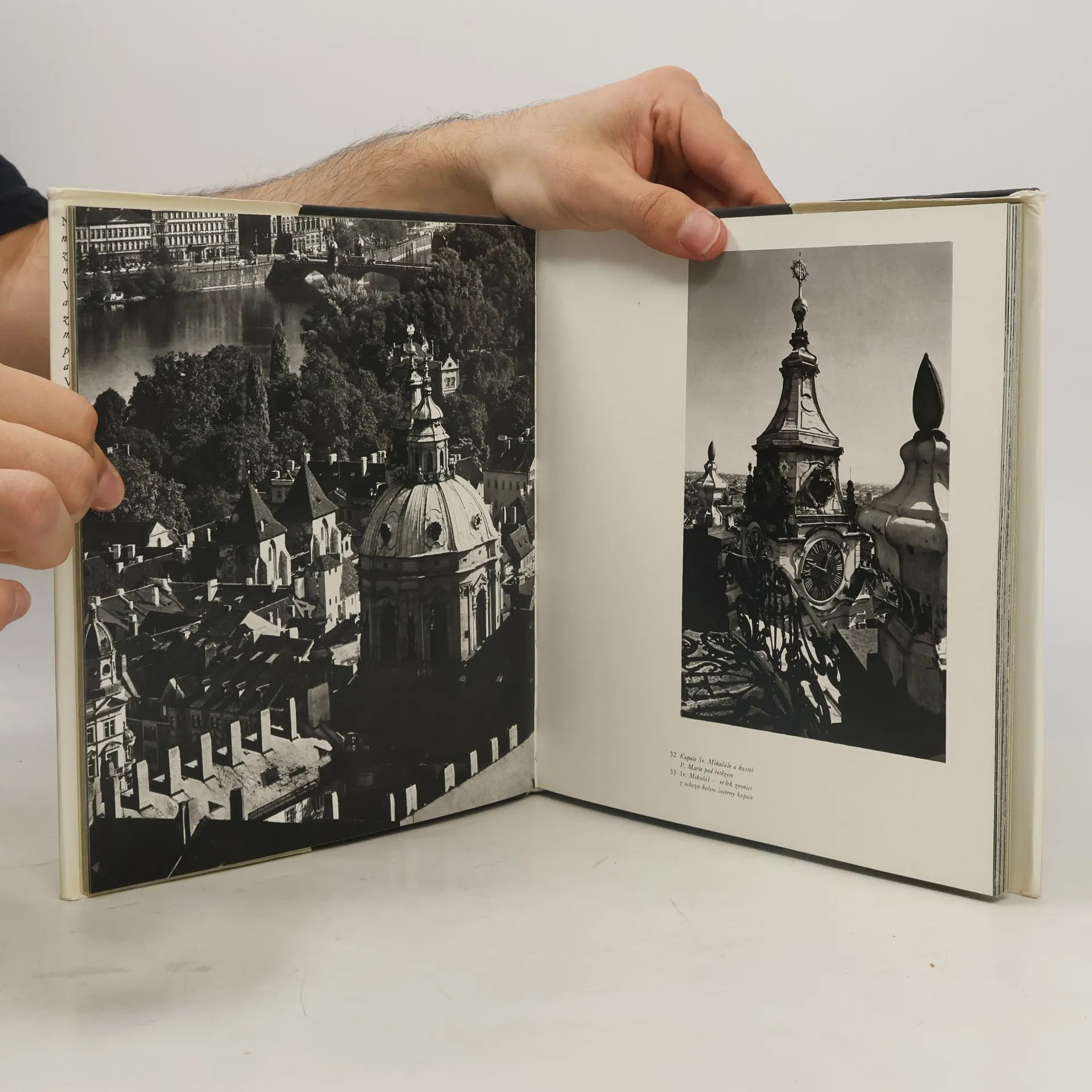 Ilustrovaná kniha, obrázky míst Prahy. Na stránkách publikace lze spatřit jednak věže historické části Prahy, do níž tu spadá Hrad, Hradčany, Malá Strana a Staré i Nové Město, a jednak výhledy z těchto věžních prostorů. Celkem 135 snímků zastihuje sice některé obvyklé pohledy, ale častěji jsou zde půvabná pražská místa objevována z neobyčejného zorného úhlu. Jeden objekt bývá zpravidla pozorován z různých stran a rovin. K obrazům je připojeno krátké průvodní slovo.