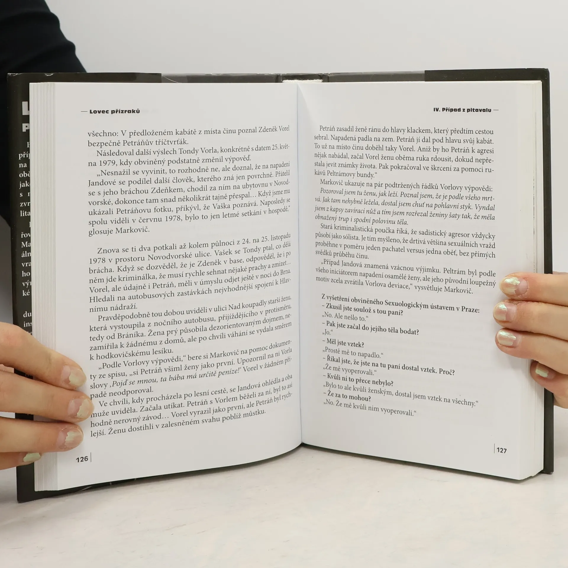 Byly to výjimečné a výjimečně kruté případy. Když kriminalisté poprvé stáli na místech vražd, nad zuboženými těly obětí, připadal jim neznámý pachatel jako vzdálený přízrak. Jako monstrum s nepochopitelným myšlením a ještě zvrácenějším konáním... Jaká byla realita? Profesionální dráha policejního vyšetřovatele a šéfa pražské mordparty Jiřího Markoviče je lemována především sexuálními vraždami. Případ pětinásobného vraha Hojera či kauza tzv. spartakiádního škrtiče Straky vstoupily už na beztak výrazně zkrvavělý piedestal historie české kriminalistiky. Markovič ale také řešil brutální vraždu v hodkovičském lese – ta svého času inspirovala scénáristu Jaroslava Dietla, stejně jako pozměnila učebnicové kánony o předpokládaném pachatelově profilu. Dozvíme se také nelítostnou pravdu o dvojnásobné vraždě v Prokopském údolí. O vraždě v restauraci U dvou koček, jež vyústila v soudní maratón. O psychopatu Vocáskovi, prvním doživotním odsouzenci, který se dnes snaží prodrat na svobodu. Navštívíme místa činu, pitevny, psychiatrická zařízení... Zasvěceným průvodcem nám bude Lovec přízraků.