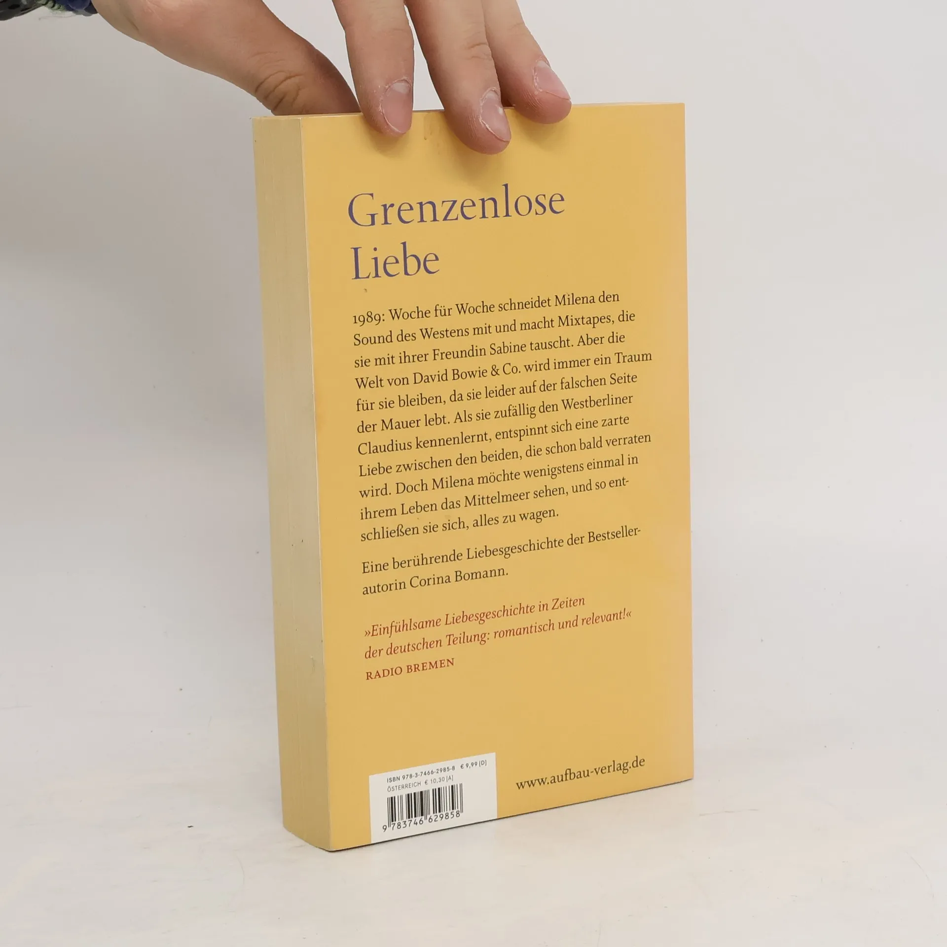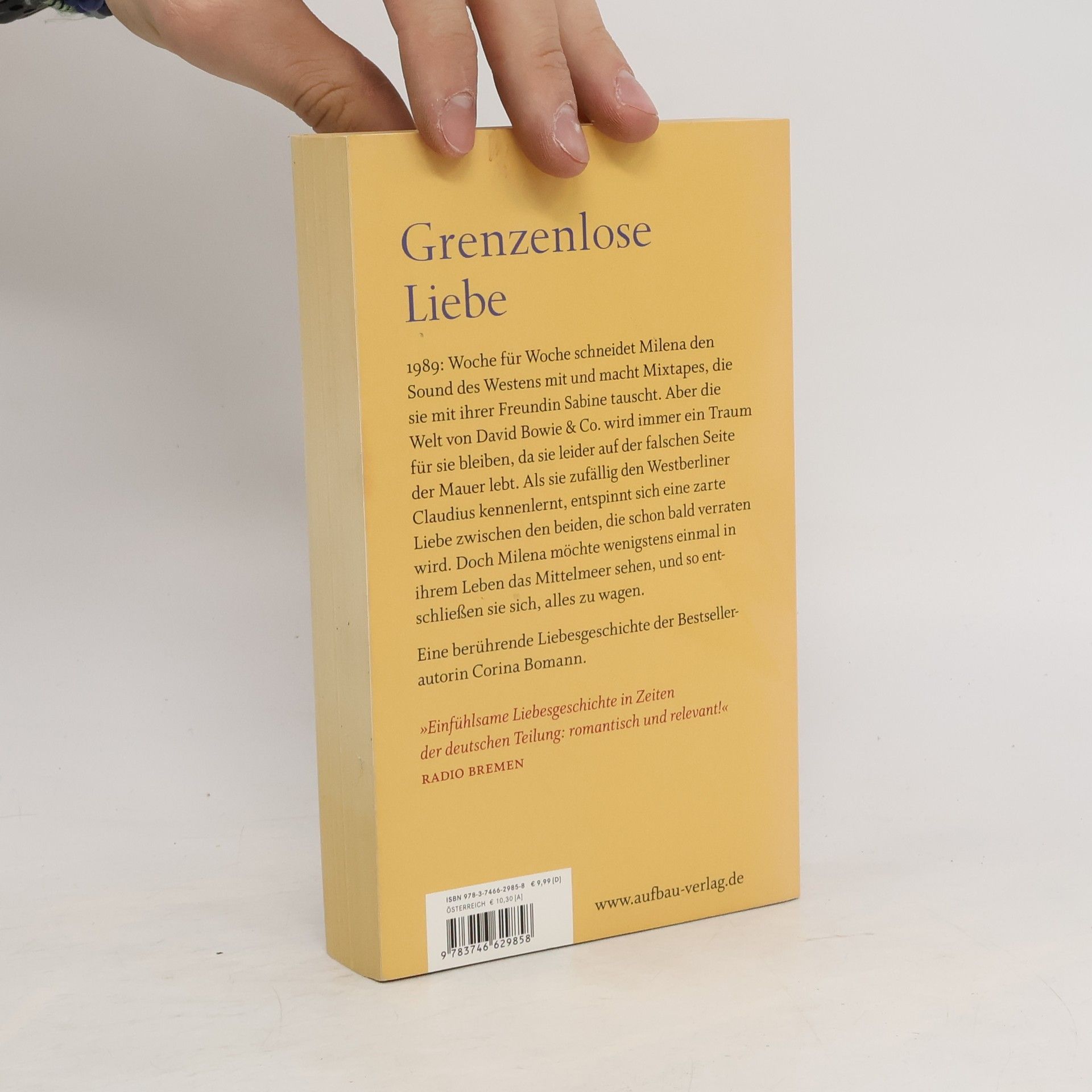 Grenzenlose Liebe 1989: Soundtrack eines Sommers. Milena wächst im Osten Berlins auf und verbringt ihre Zeit damit, verbotene Westmusik aus dem Radio aufzunehmen, wenn sie nicht gerade abenteuerliche Wandzeitungen für ihre Staatsbürgerkundelehrerin anfertigen muss. Claudius lebt im Westen Berlins und hat alle Hände voll damit zu tun, seinen Vater zu überzeugen, dass er nicht seine Rechtsanwaltskanzlei übernehmen wird. Er will nur eins: Musik machen und die Welt sehen. Als Claudius bei einem Tagesausflug nach Ostberlin zufällig Milena begegnet, ist seine Welt nicht mehr die alte. Mit einer Kassette, die Milena in der U-Bahn vergisst, beginnt eine zarte Liebe, die nicht sein darf. Die Mauer steht zwischen ihnen und ihrem gemeinsamen Traum, aber Milena und Claudius sind verrückt genug, alles für ihn zu wagen. Eine berührende Liebesgeschichte der Bestsellerautorin Corina Bomann. „Einfühlsame Liebesgeschichte in Zeiten der deutschen Teilung: romantisch und relevant!“ Radio Bremen | Saarländischer RF „Und morgen am Meer verspricht Spannung und Gefühl im Übermaß und verführt die Sinne zu einer wundervollen Lektüre, die man lange in Erinnerung behalten wird.“ literaturmarkt. info