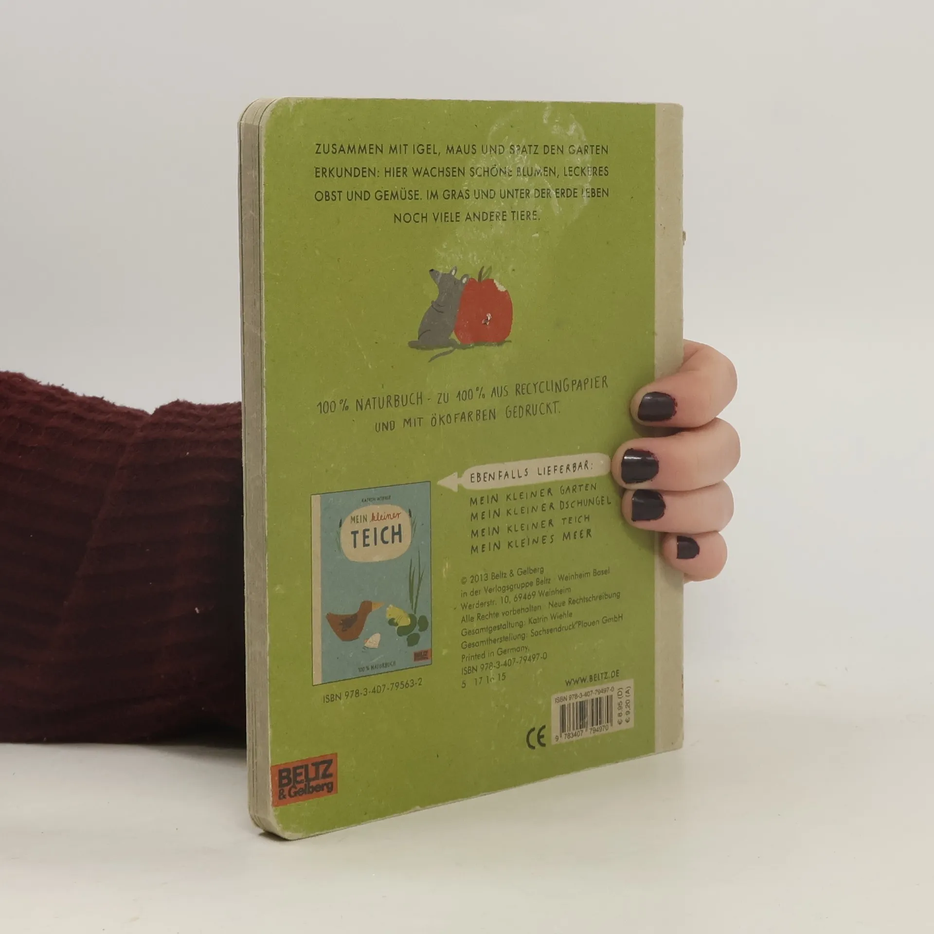 Igel, Maus und Spatz zeigen uns ihren Lebensraum vor unserer Haustür: Im Garten wachsen schöne Blumen, leckeres Obst und viel Gemüse. Und unter der Erde leben noch viele andere Tiere. Pointierte, klare Bilder und einfache Texte wecken erstes Interesse an Natur und Tieren – auch schon bei den Allerkleinsten. Im Bewusstsein für Umweltschutz und Nachhaltigkeit, mit Ökofarben auf Recyclingpapier gedruckt: das ist unser 100% Naturbuch.