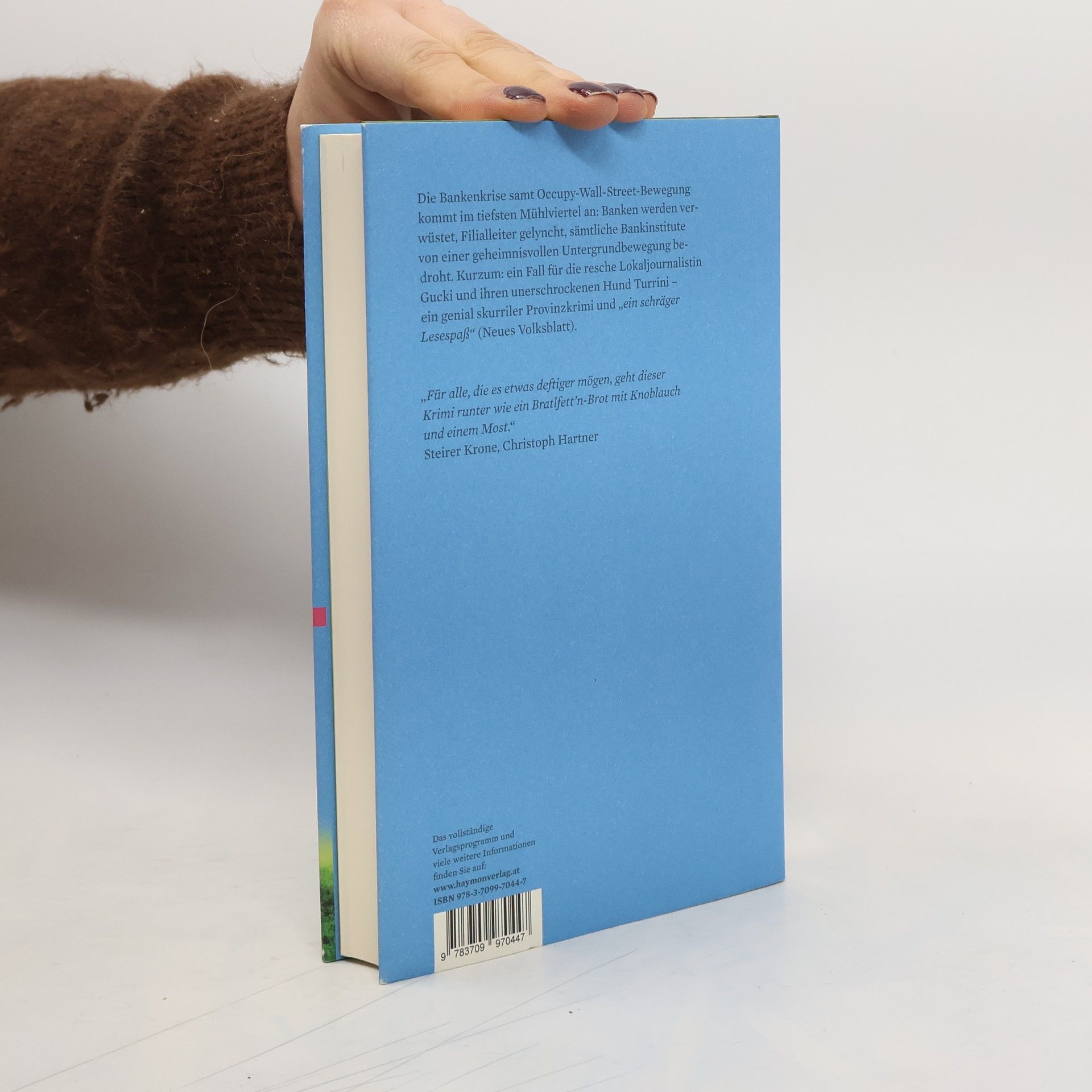 Wir schreiben das Jahr 2011. Die Bankenkrise samt Occupy-Wall-Street-Bewegung ist endlich auch im tiefsten Mühlviertel angekommen. Banken werden verwüstet, Filialleiter gelyncht, sämtliche Bankinstitute von einer geheimnisvollen Untergrundbewegung bedroht. Kurzum: ein Fall für die resche Lokaljournalistin Gucki und ihren unerschrockenen Hund Turrini.