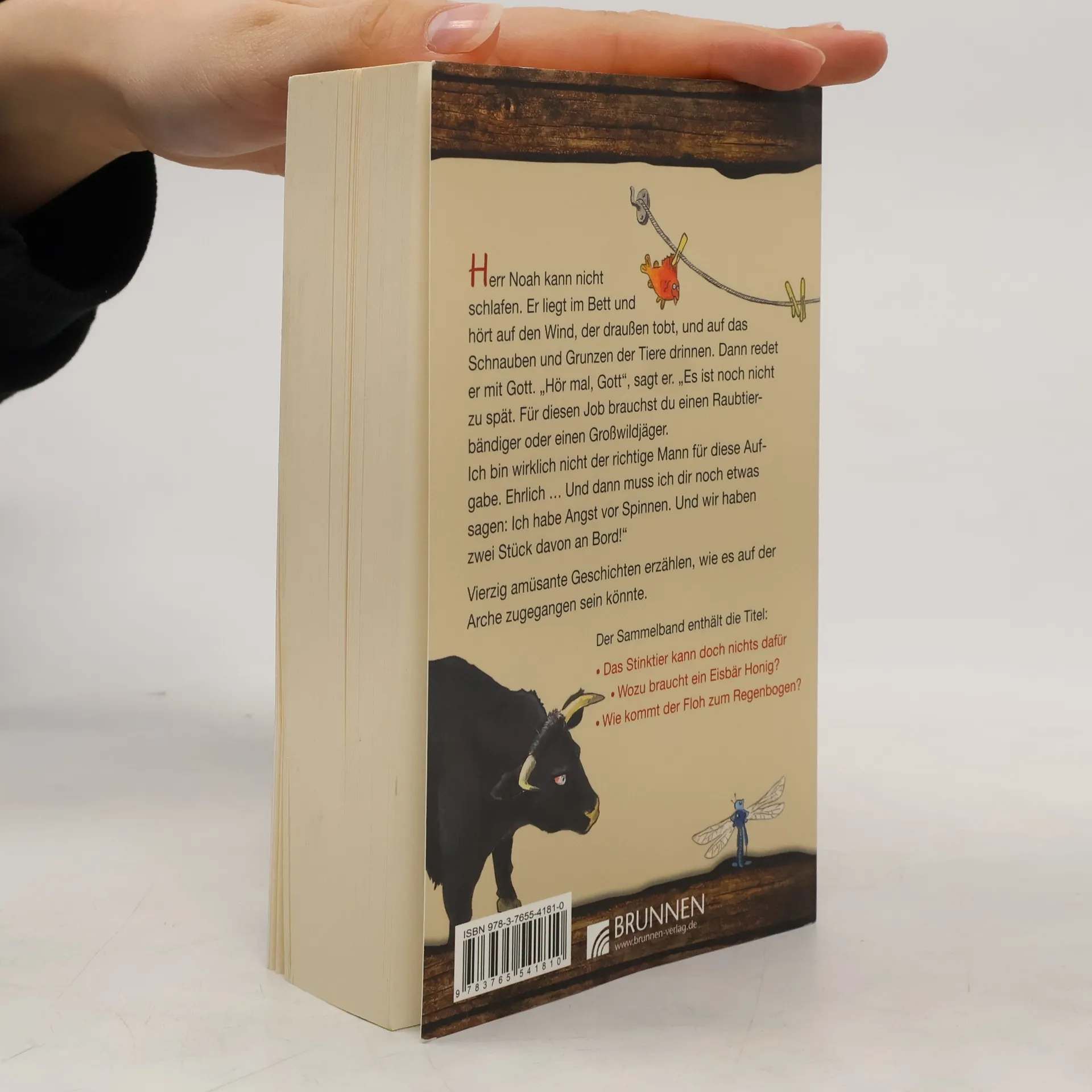 Herr Noah kann nicht schlafen. Er liegt im Bett und hört auf den Wind, der draußen tobt, und auf das Schnauben und Grunzen der Tiere drinnen. Dann redet er mit Gott. "Hör mal, Gott", sagt er. "Es ist noch nicht zu spät. Für diesen Job brauchst du einen Raubtierbändiger oder einen Großwildjäger. Ich bin wirklich nicht der richtige Mann für diese Aufgabe. Ehrlich Und dann muss ich dir noch etwas sagen: Ich habe Angst vor Spinnen. Und wir haben zwei Stück davon an Bord!" Vierzig amüsante Geschichten erzählen, wie es auf der Arche zugegangen sein könnte. Der Sammelband enthält die Titel: - Das Stinktier kann doch nichts dafür (über 21.000 Mal verkauft) - Wozu braucht ein Eisbär Honig? (über 13.000 Mal verkauft) - Wie kommt der Floh zum Regenbogen? (über 8.000 Mal verkauft)