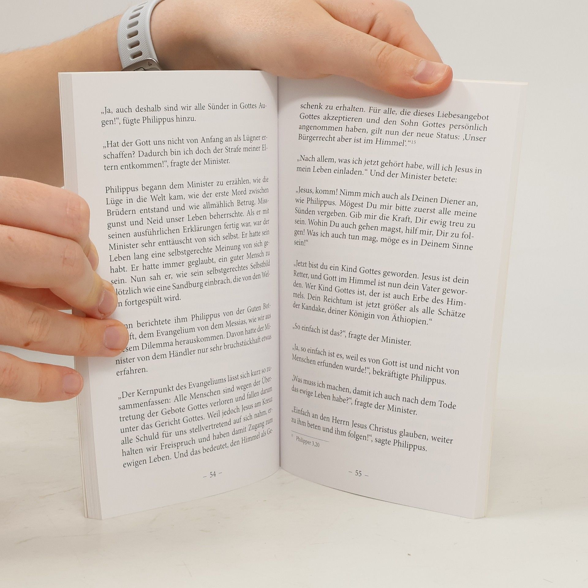 Nach meiner Erfahrung in der evangelistischen Verkündigung gehört die Geschichte von dem äthiopischen Finanzminister (Apg. 8,26-40) zu den beeindruckendsten Schilderungen der Bibel. Hier wird uns ein Gottesucher vorgestellt, der kaum etwas von Gott wusste, dem aber kein Weg zu weit, kein Aufwand zu groß und keine Zielsetzung wichtiger war, um das ewige Leben zu finden. Was mag diese hohen Beamten nur dazu bewegt haben, mit einer so konsequenten Entschlossenheit alles daran zu setzen, um den wahren Gott zu erkennen? In erzählerischer Freiheit, aber dennoch die biblischen Grundlinien einhaltend, hat Jasmin Yildiz die Ministergeschichte in so spannender Weise aufgearbeitet, dass man das Büchlein nicht mehr aus der Hand legen kann, bevor man nicht alles gelesen hat. Gerde für Leser, die sich noch nicht in der Bibel auskennen, ist diese Geschichte eine besonders effektive Hilfe, das Evangelium zu verstehen. In dem Dialog zwischen Philippus und dem Minister wird dem suchenden Leser auf leicht nachvollziehbare Art der Weg der Rettung nahegebracht. Ist er dann selbst geneigt, auch in den Besitz des ewigen Lebens zu gelangen, dann findet er im Anhang eine Art Gebrauchsanweisung für diesen notwendigen Schritt, um einmal das Himmelreich zu erreichen.