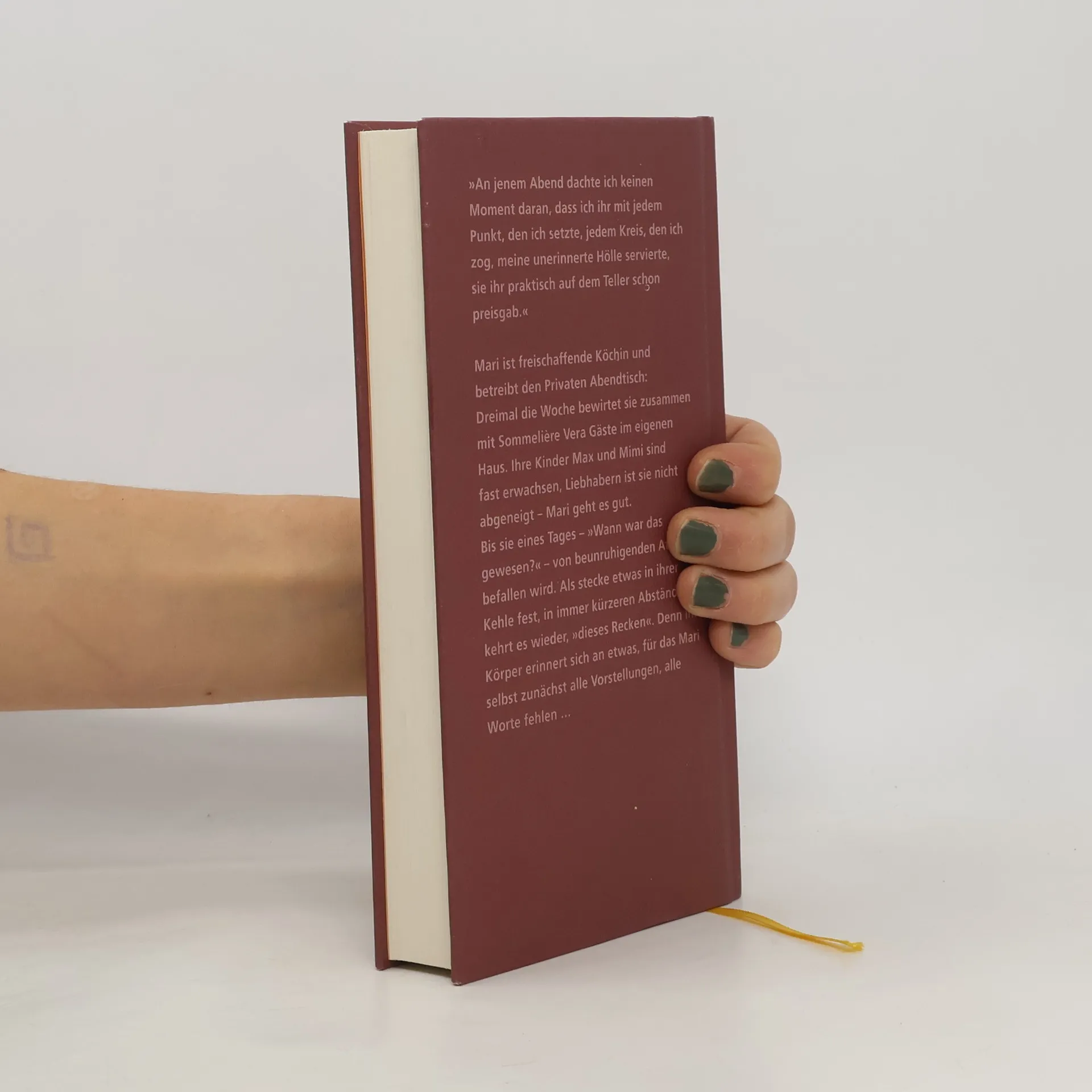 Mari hat sich eine Existenz als freischaffende Köchin aufgebaut und betreibt zusammen mit Freundin und Sommelière Vera den Privaten Abendtisch: Drei Mal pro Woche bewirtet sie Gäste in ihrem Haus. Ein Haus, das die Form einer Bienenwabe hat, ein behaglicher Kosmos der Selbstbestimmtheit, den sie nur selten verlassen muss. Ihre Kinder, die Zwillinge Max und Mimi, machen gerade die Matura, mit ihrem Ex-Mann ist Mari noch immer gut befreundet, auch Liebhabern ist sie nicht abgeneigt – Mari geht es gut. Bis sie eines Tages – »Wann war das gewesen?« – von beunruhigenden Attacken befallen wird. Als stecke etwas in ihrer Kehle fest, in immer kürzeren Abständen kehrt es wieder, »dieses Recken«. Denn ihr Körper erinnert sich an etwas, für das Mari selbst zunächst alle Vorstellungen, alle Worte fehlen … Beeindruckend unaufdringlich und ohne laute Skandalrufe schildert der Roman, wie nicht erinnerte sexuelle Gewalt seine zerstörerische Kraft erst nach einem halben Leben entfaltet, wie vermeintliche Sicherheiten in sich zusammenfallen, wenn verborgene Machtmechanismen mit leiser Wucht ihr Werk tun.