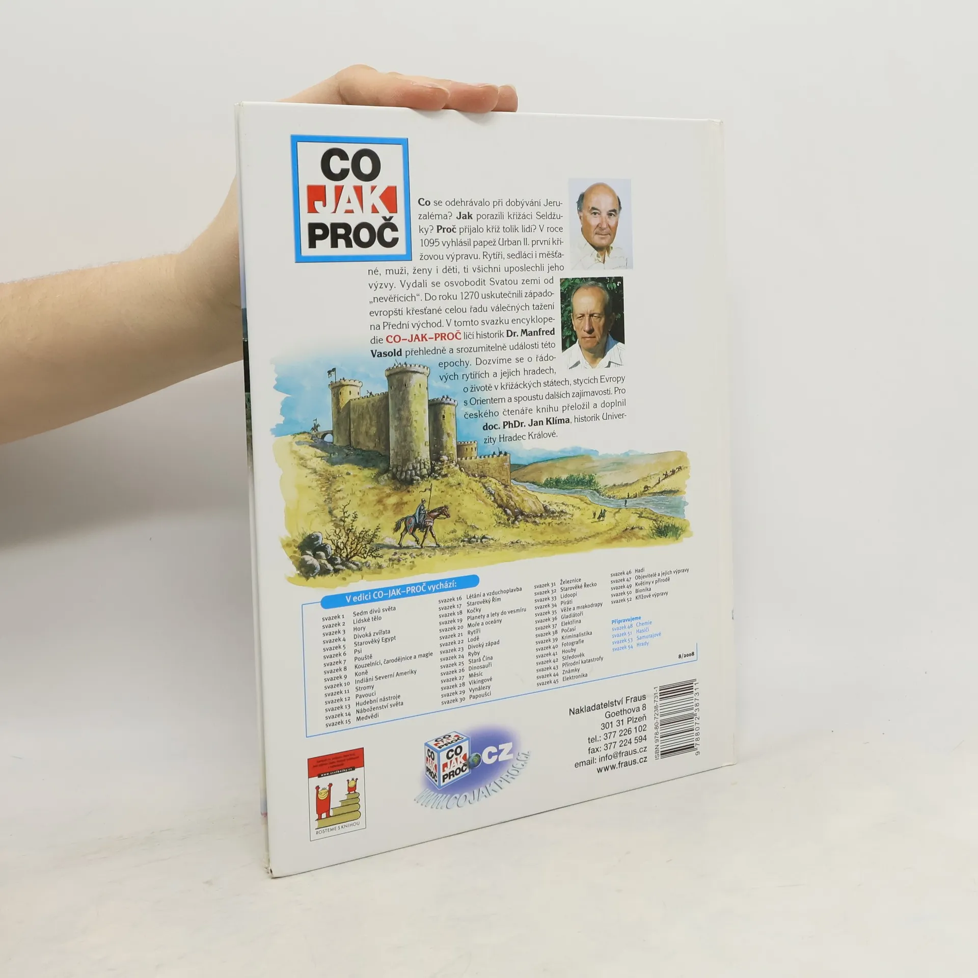 Co se odehrávalo při dobývání Jeruzaléma? Jak porazili křižáci Seldžuky? Proč přijalo kříž tolik lidí? V roce 1095 vyhlásil papež Urban II. první křížovou výpravu. Rytíři, sedláci i měšťané, muži, ženy i děti, ti všichni uposlechli jeho výzvy. Vydali se svobodit Svatou zemi od „nevěřících". Do roku 1270 uskutečnili západoevropští křesťané celou řadu válečných tažení na Přední východ. V tomto svazku ncyklopedie CO-JAK-PROČ líčí historik dr.Manfred Vasold přehledně a rozumitelně události této epochy. Dozvíme se o řádových rytířích a jejich hradech, o životě v křižáckých státech, stycích Evropy s Orientem a spoustu dalších zajímavostí. Pro českého čtenáře knihu přeložil a doplnil doc. PhDr. Jan Klíma, historik univerzity Hradec Králové.