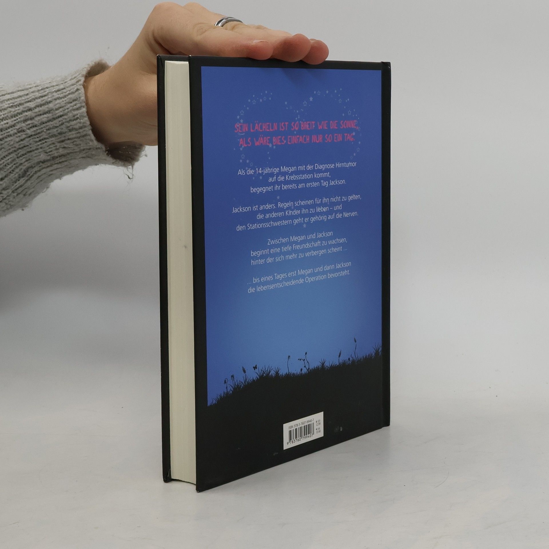 Die Tage auf der Krebsstation kommen Megan wie das Leben auf einem fremden Planeten vor. Abgekapselt von ihrer Familie und ihren Freunden, umgeben von Patienten, die alle deutlich jünger sind als sie. Alle bis auf Jackson – dem sie zunächst mit Ablehnung begegnet. Jackson ist verwirrend „anders“. Er kennt keine Regeln und hat, obwohl selbst schwerkrank, immer ein Lächeln auf den Lippen. Im abgeschiedenen Kosmos des Krankenhauses entsteht schon bald ein zartes Band zwischen Megan und Jackson, das jeden Tag stärker wird. Ein Band, dem die Krankheit nichts anhaben kann, das für beide zum Anker wird - und das selbst den Tod überwindet.