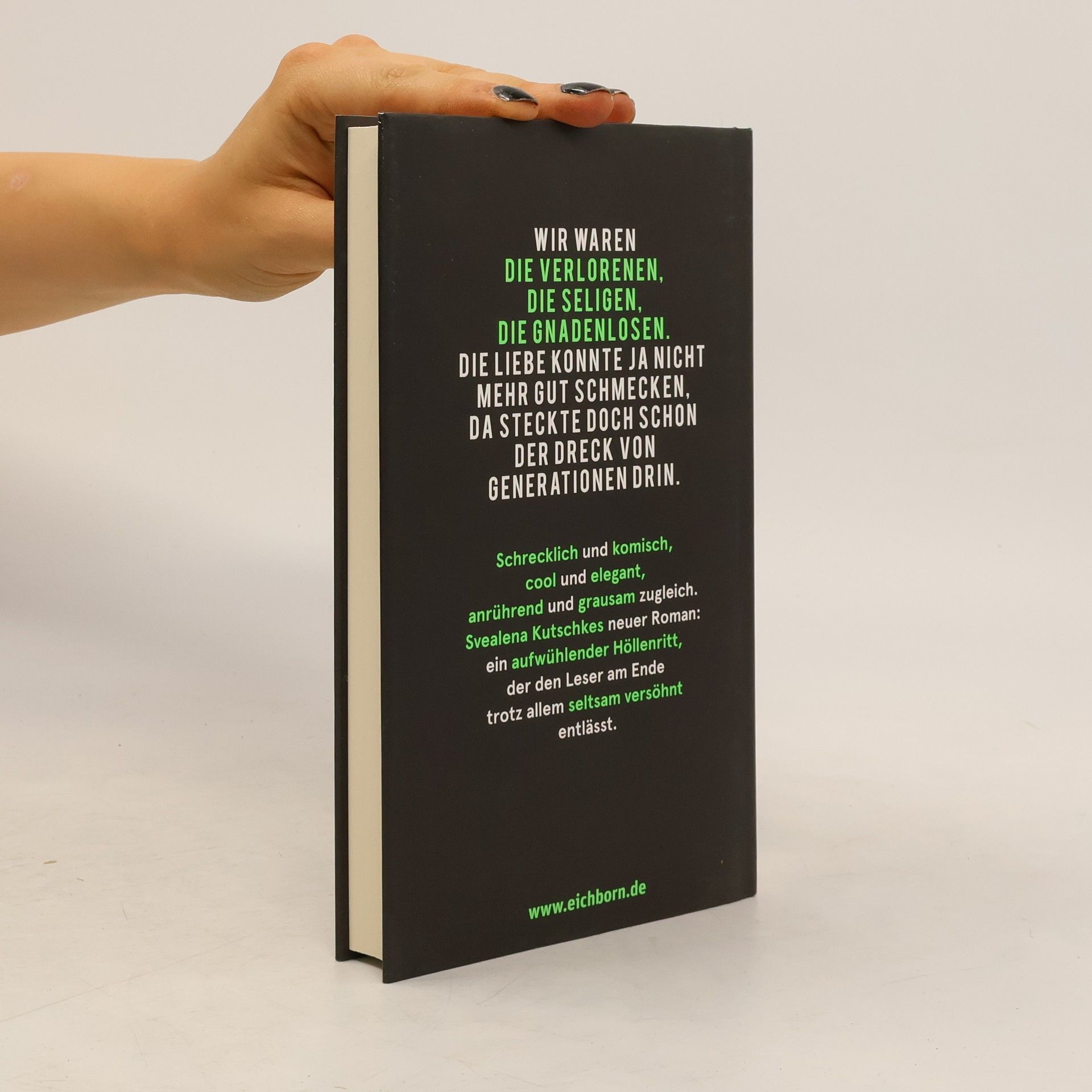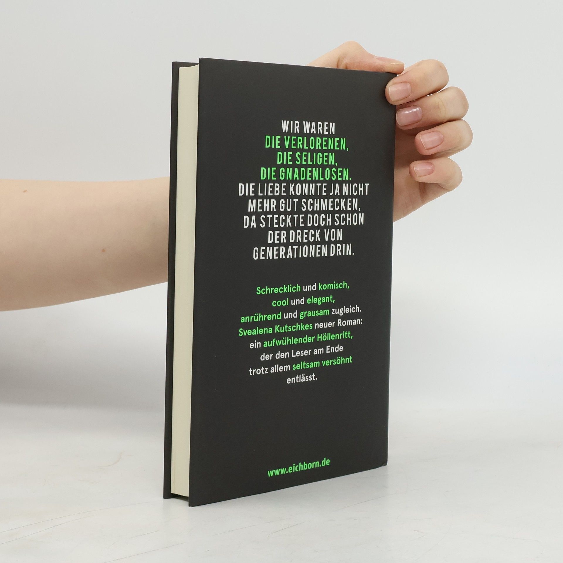Wir waren die Verlorenen, die Seligen, die Gnadenlosen. Die Liebe konnte ja nicht mehr gut schmecken, da steckte doch schon der Dreck von Generationen drin. Sasha und Jannis sind jung und sie wissen nicht, was sie tun; heilig ist ihnen allein ihre Kunst. Ihr Mobiliar suchen sie danach aus, ob man sich an den Kanten anständig verletzen kann. Dann wird Lizzy geboren. Sashas Art zu lieben ist so hilflos wie gnadenlos. Sieben Jahre führt die Familie ein Leben wie ein Drahtseilakt, bis das Seil schließlich reißt. Sashas Kunst wird radikaler, die Künstlerin gefährlich. Sie weiß noch immer nicht, was sie tut, aber das mit erschreckender Konsequenz. Wir erleben: wie eine Frau, die zu mögen uns sehr leicht fällt, zur Mörderin wird. Svealena Kutschkes neuer Roman ist schrecklich und komisch, cool und elegant, anrührend und grausam zugleich. Und dass dieser aufwühlende Höllenritt den Leser am Ende trotz allem seltsam versöhnt entlässt, ist ihre große Kunst.