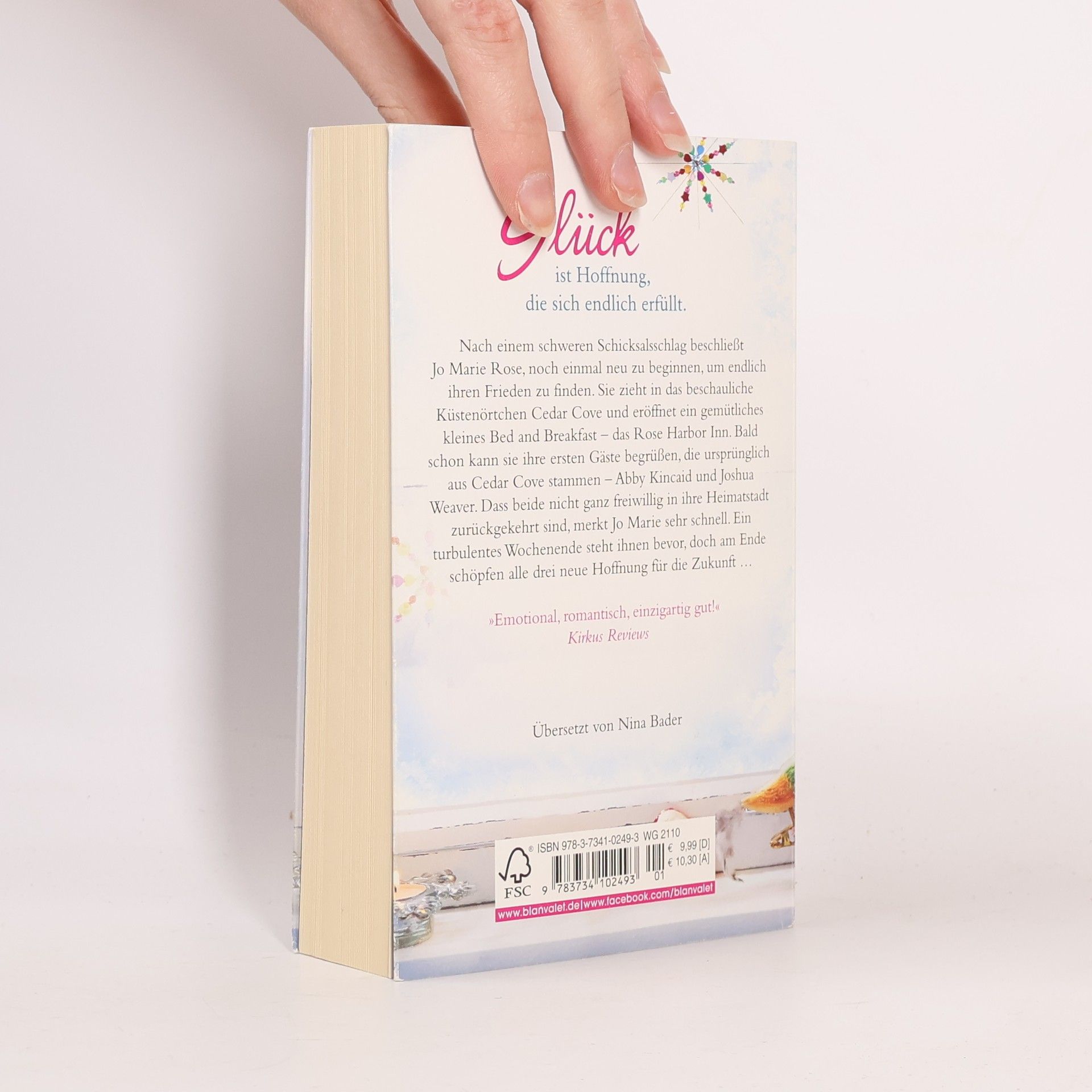 Wer Nora Roberts mag, wird Debbie Macomber lieben! Nach einem schweren Schicksalsschlag beschließt Jo Marie Rose, noch einmal neu zu beginnen um endlich ihren Frieden zu finden. Sie zieht in das beschauliche Küstenörtchen Cedar Cove und eröffnet ein gemütliches kleines Bed and Breakfast – das Rose Harbor Inn. Bald schon kann sie ihre ersten Gäste begrüßen, die beide aus Cedar Cove stammen – Abby Kincaid und Joshua Weaver. Dass beide nicht ganz freiwillig in ihre Heimatstadt zurückkehrten, merkt Jo Marie sehr schnell. Ein turbulentes Wochenende steht ihnen bevor, doch am Ende schöpfen alle drei neue Hoffnung für die Zukunft … Die Rose-Harbor-Reihe: Band 1: WinterglückBand 2: FrühlingsnächteBand 3: SommersterneBand 4: Wolkenküsse (Short Story)Band 5: HerbstleuchtenBand 6: Rosenstunden