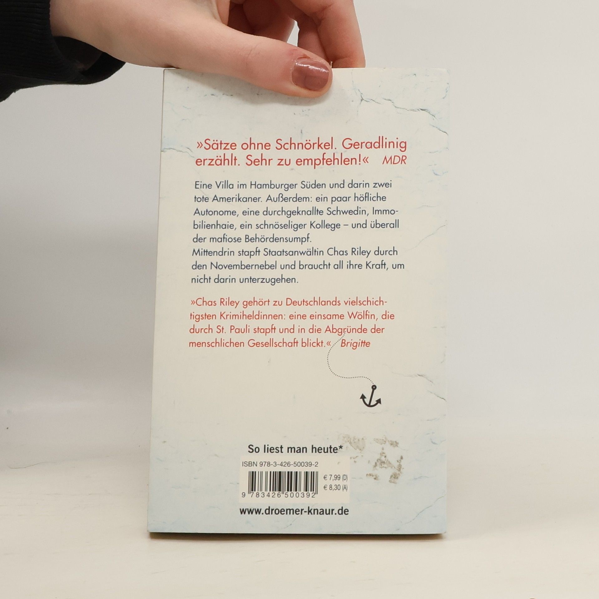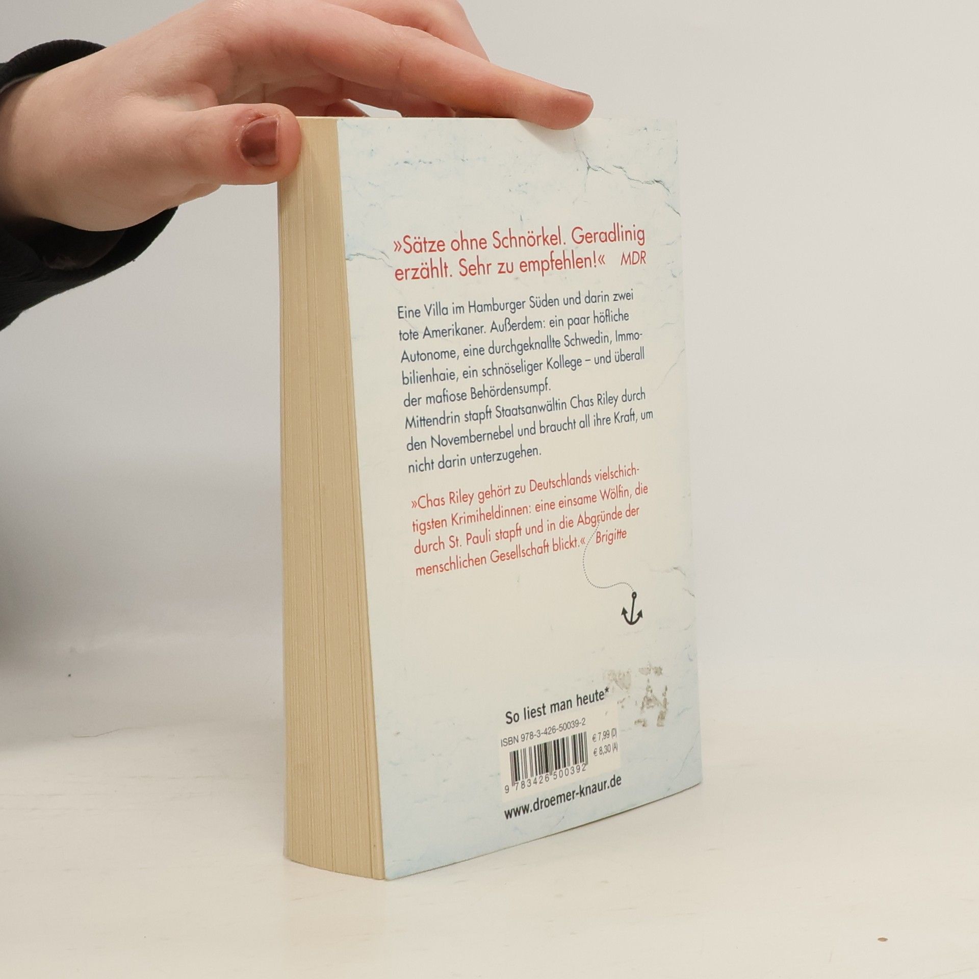Eine Villa im Hamburger Süden und darin zwei tote Amerikaner. Außerdem: ein schnüffelnder Ex-Kommissar, ein paar sehr höfliche Autonome, eine durchgeknallte Schwedin, Immobilienhaie, eine Freundin, die vielleicht ein Kind bekommt, ein schnöseliger Kollege – und überall der mafiose Behördensumpf. Mittendrin stapft Staatsanwältin Chas Riley durch den Novembernebel und braucht all ihre Kraft, um nicht darin unterzugehen.