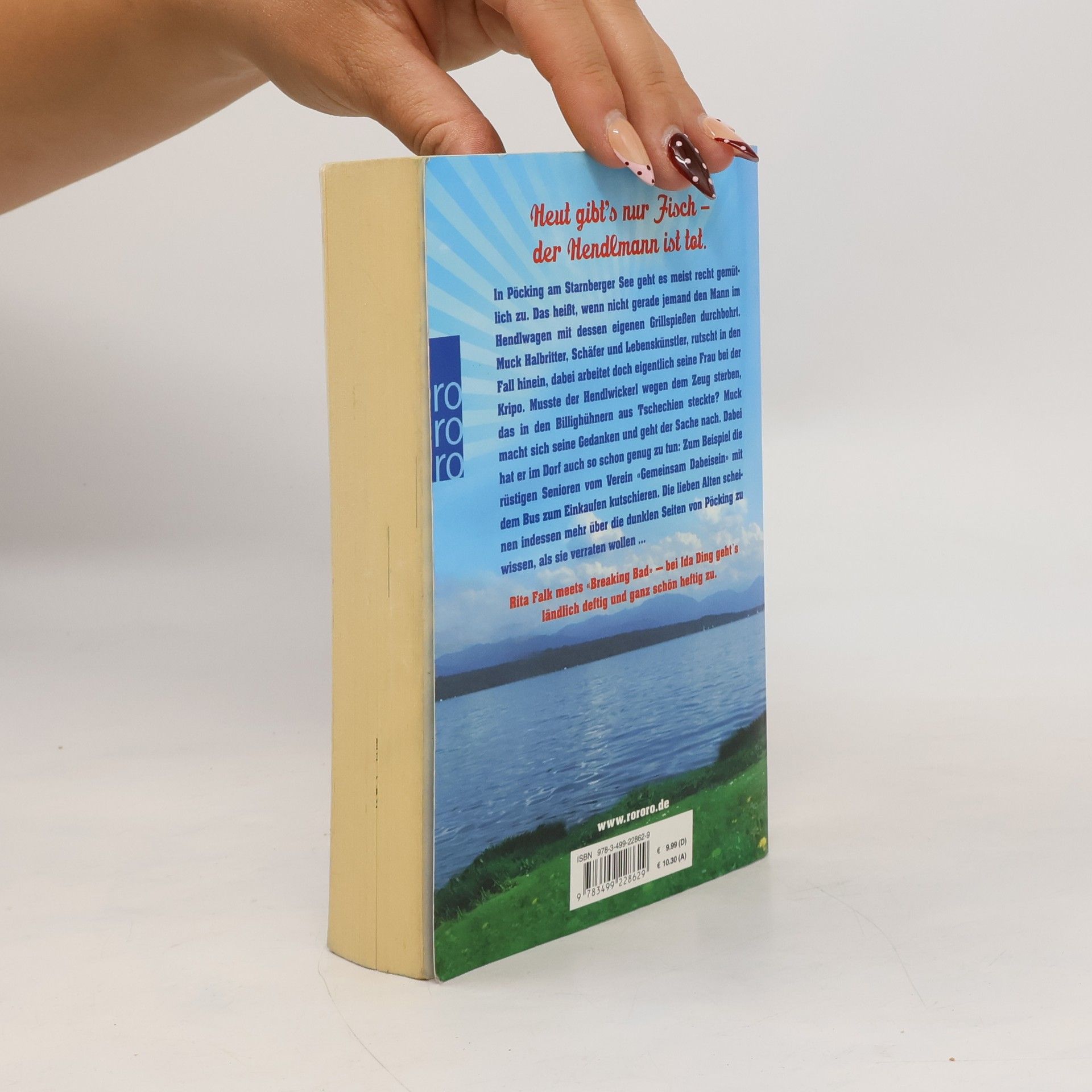 Heut gibt’s nur Fisch – Der Hendlmann ist tot In Pöcking am Starnberger See geht es meist recht gemütlich zu. Das heißt, wenn nicht gerade jemand den Mann im Hendlwagen mit dessen eigenen Grillspießen durchbohrt. Muck Halbritter, Schäfer und Lebenskünstler, rutscht in den Fall hinein, dabei arbeitet doch eigentlich seine Frau bei der Kripo. Musste der Hendlwickerl wegen dem Zeug sterben, das in den Billighühnern aus Tschechien steckte? Muck macht sich seine Gedanken und geht der Sache nach. Dabei hat er im Dorf auch so schon genug zu tun: Zum Beispiel die rüstigen Senioren vom Verein „Gemeinsam Dabeisein“ mit dem Bus zum Einkaufen kutschieren. Die lieben Alten scheinen indessen mehr über die dunklen Seiten von Pöcking zu wissen, als sie verraten wollen… Rita Falk meets «Breaking Bad» – Bei Ida Ding geht‘s ländlich deftig und ganz schön heftig zu.