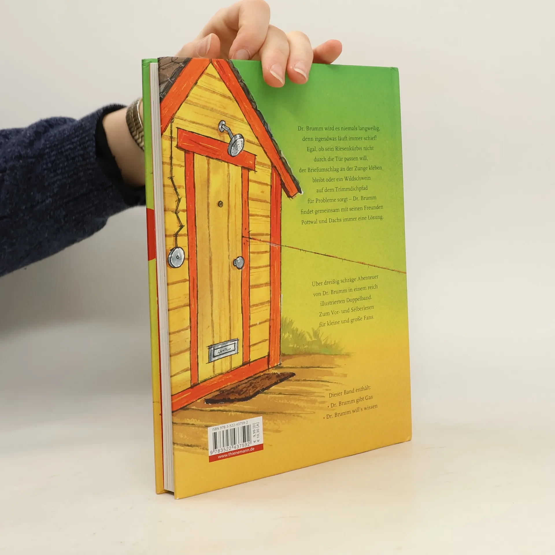 Ein Dr.-Brumm-Best-of für Kinder ab 4 Jahren. Dr. Brumm wird es niemals langweilig, denn irgendwas läuft immer schief! Egal, ob sein Riesenkürbis nicht durch die Tür passen will, der Briefumschlag an der Zunge kleben bleibt oder ein Wildschwein auf dem Trimmdichpfad für Probleme sorgt – Dr. Brumm findet gemeinsam mit seinen Freunden Pottwal und Dacks immer eine Lösung. Über dreißig schräge Abenteuer von Dr. Brumm, in einem reich illustrierten Doppelband. Zum Vor- und Selberlesen für kleine und große Fans.