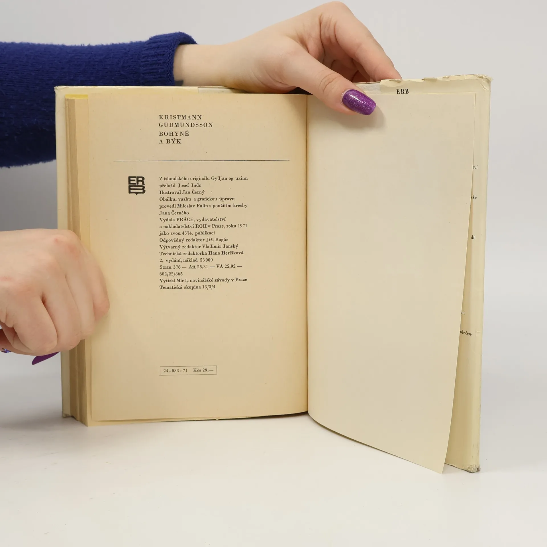 Bohyně a býk, Kristmann Gudmundsson, Josef Indr