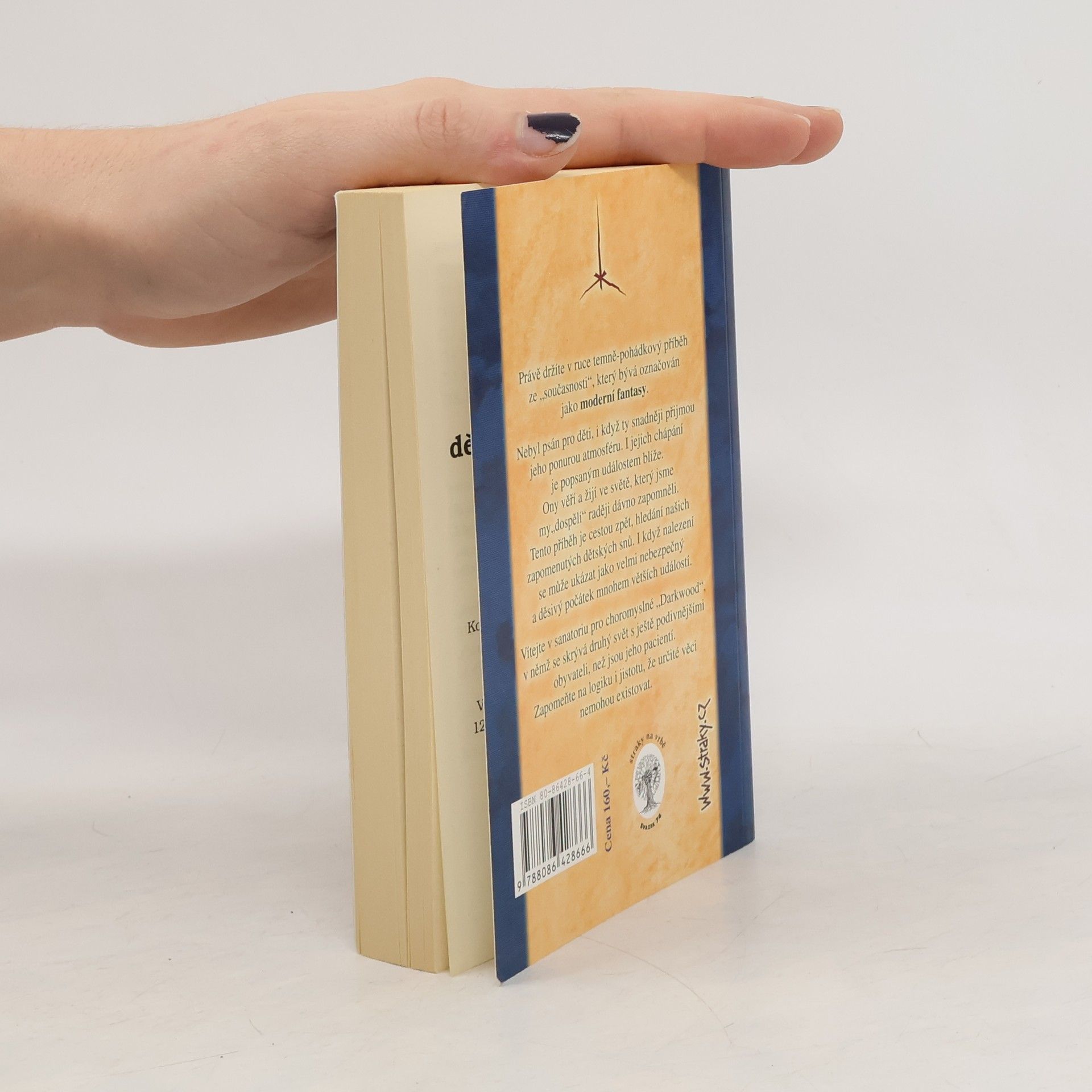Před vámi leží temně-pohádkový příběh, moderní fantasy. Nebyl psán pro děti, i když ty snadněji přijmou jeho ponurou atmosféru. I jejich chápání je popsaným událostem blíže. Ony věří a žijí ve světě, který jsme my dospělí raději dávno zapomněli. Tento příběh je cestou zpět, hledání našich zapomenutých dětských snů. I když nalezení se může ukázat jako velmi nebezpečný a děsivý počátek mnohem větších událostí. Vítejte v sanatoriu pro choromyslné Darkwood, v němž se skrývá druhý svět s ještě podivnějšími obyvateli, než jsou jeho pacienti. Zapomeňte na logiku i jistotu, že určité věci nemohou existovat.... celý text
