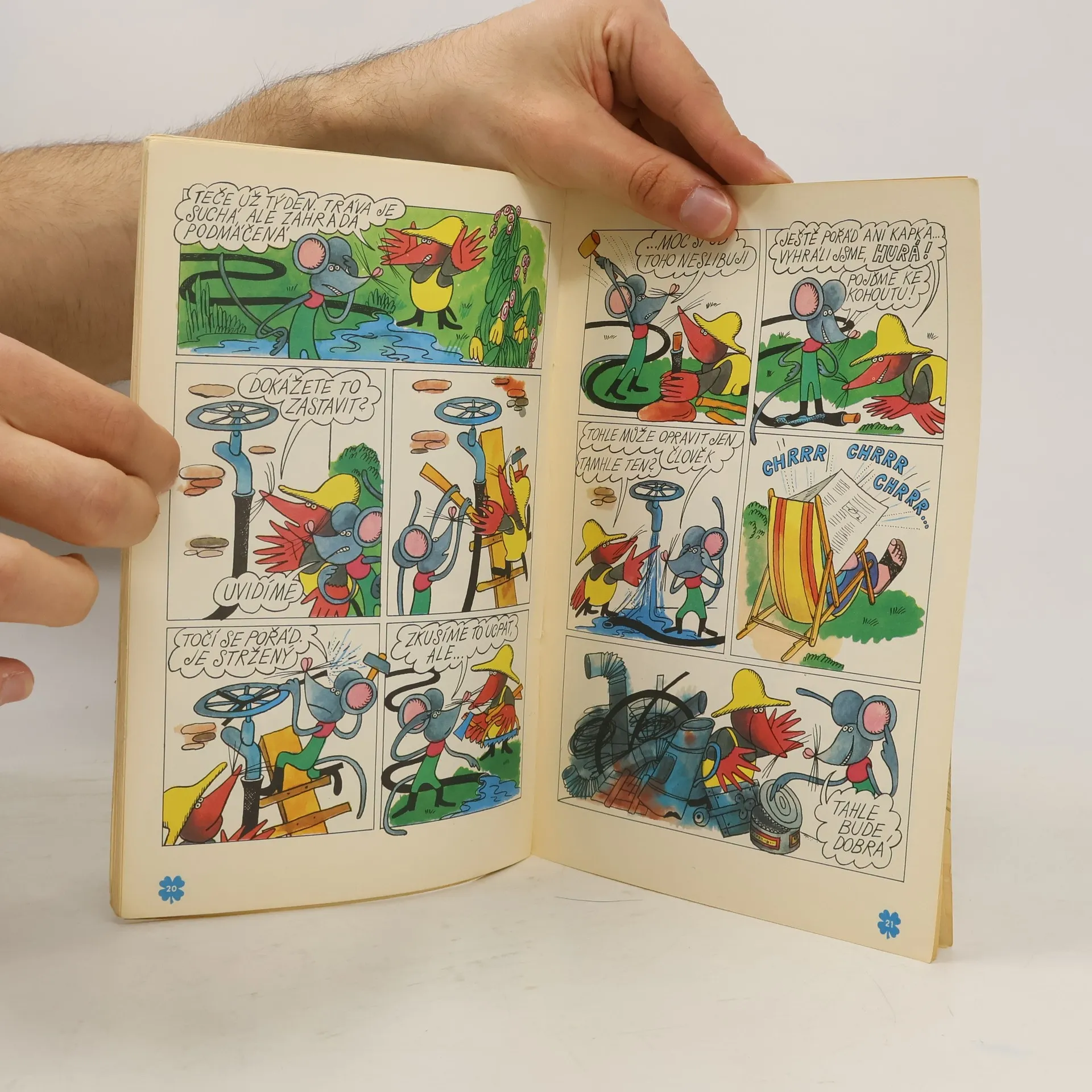 79. díl série. V džungli trav - Ljuba Štíplová, Jaroslav Němeček. Raketa pana Semtamťuka - Svatopluk Hrnčíř, Adolf Born. Koumes a rozbitý vodovodní kohoutek - Vladimír Kliman, Sylvie Vodáková. Polda a Olda kouzelničí - Petr Chvojka, Jaroslav Malák. Miki, Tiki a sluneční prasátko - Kateřina Krejčí, Eva Průšková.