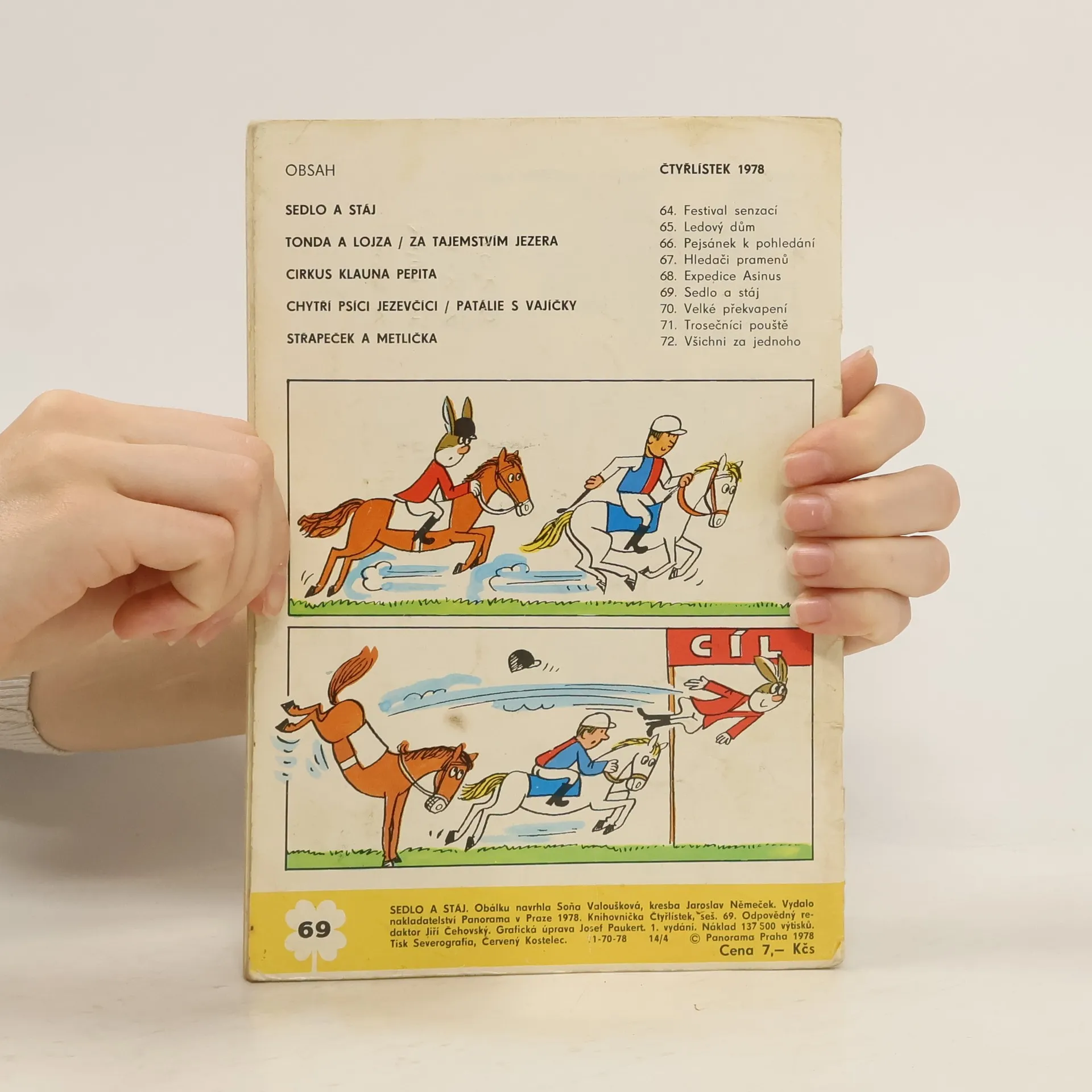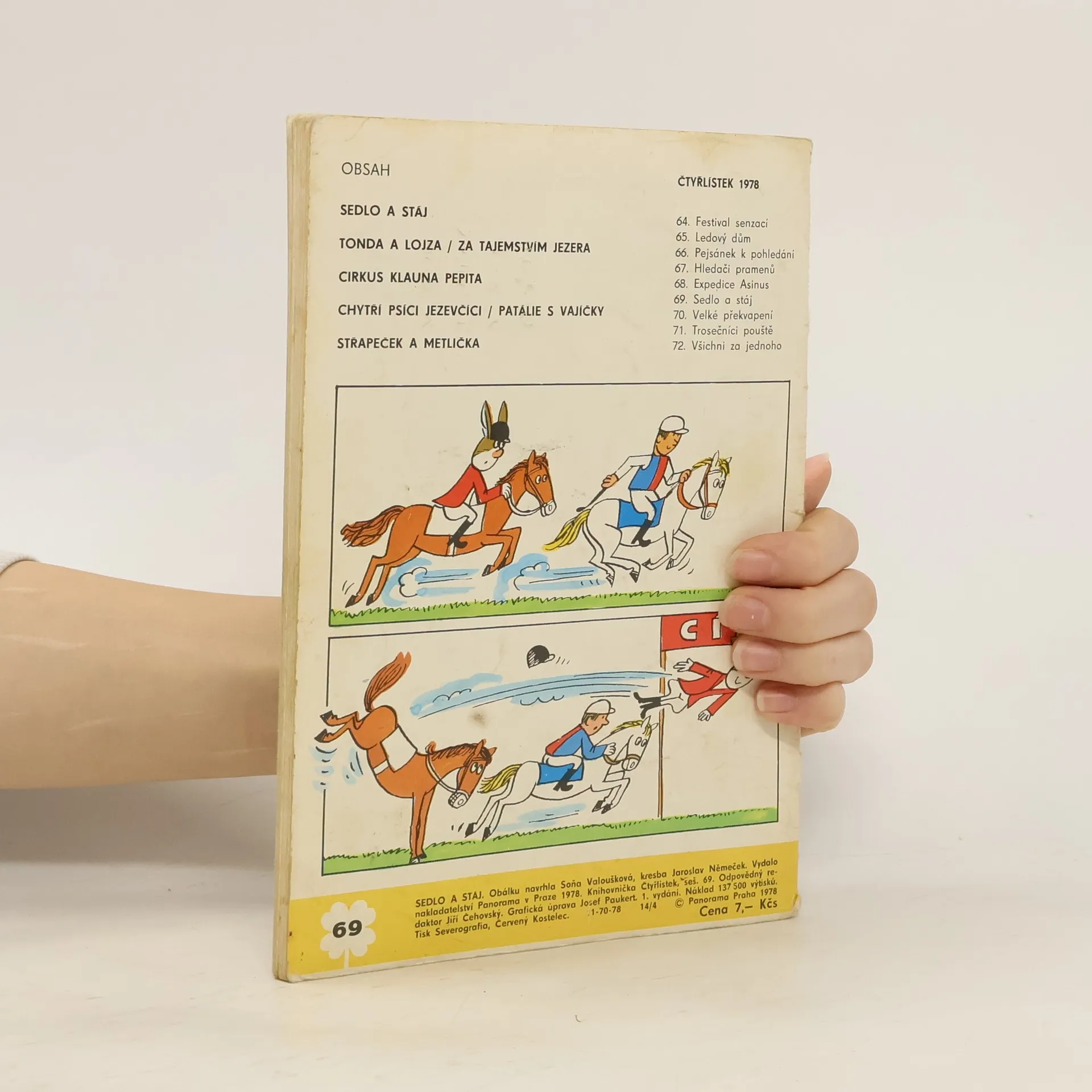 Skladem máme celkem knihy Čtyřlístek č. 69. Sedlo a stáj a čtyři další obrázkové příběhy (1978).