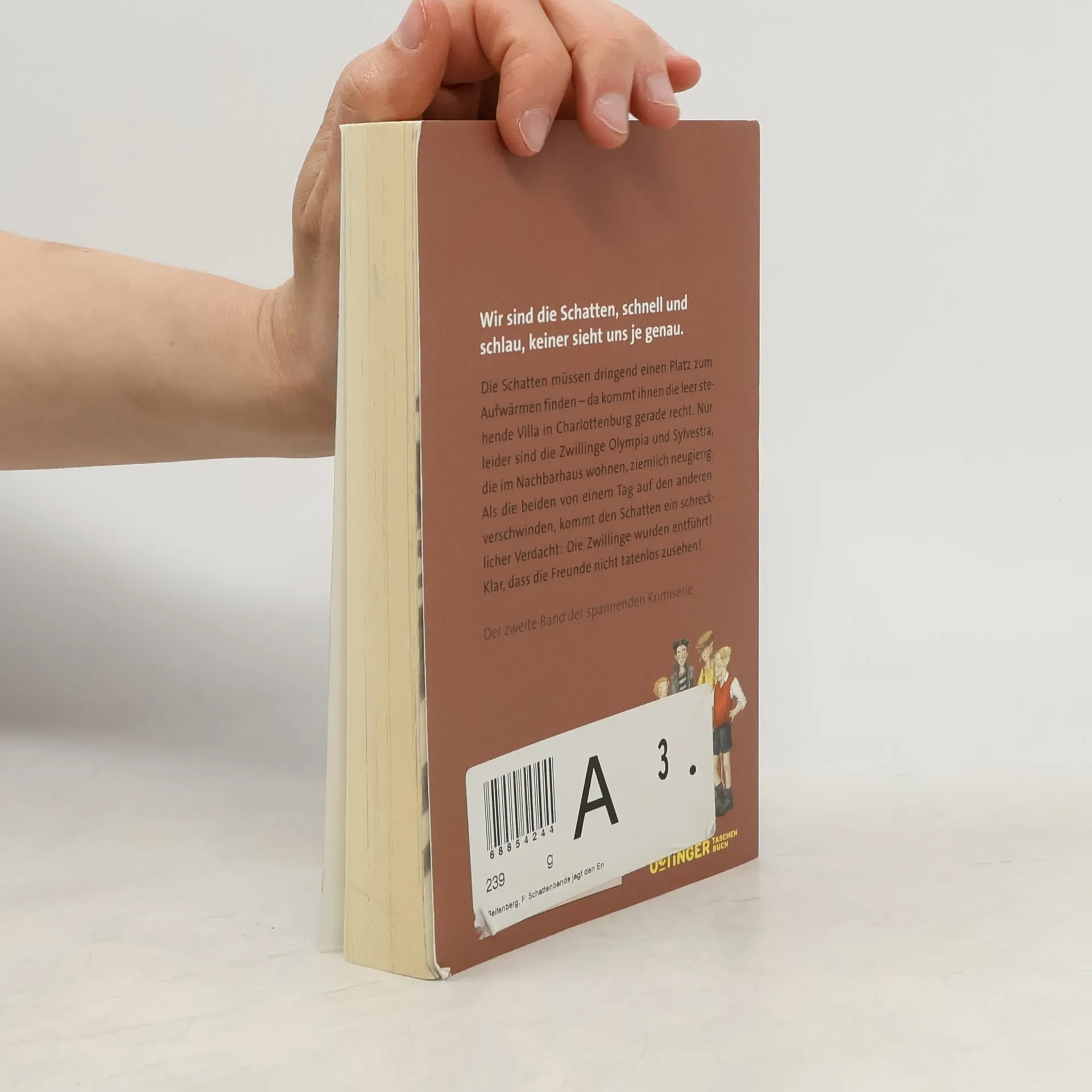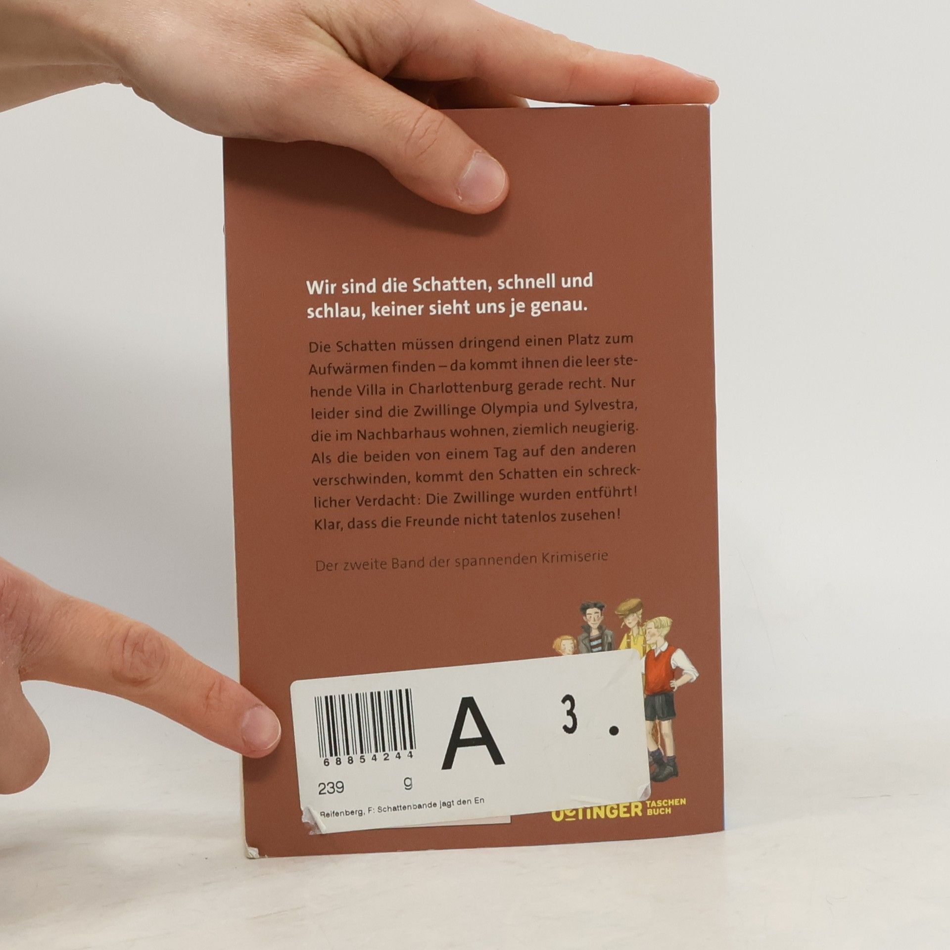 Klara, Otto, Paule und Lina sind: Die Schattenbande! Neugierig, flink und furchtlos sind sie immer da, wo ein Verbrechen Aufklärung fordert. Als die Nachbars-Zwillinge Olympia und Sylvestra von heute auf morgen verschwinden und überall von Entführung gemunkelt wird, ist es natürlich Ehrensache, dass die vier auch diesen rätselhaften Fall lösen wollen. Zweiter Band der originellen Kinder-Krimi-Reihe, mit dem Berlin der 20er-Jahre als Schauplatz. Ausgezeichnet mit dem Leipziger Lesekompass 2014.