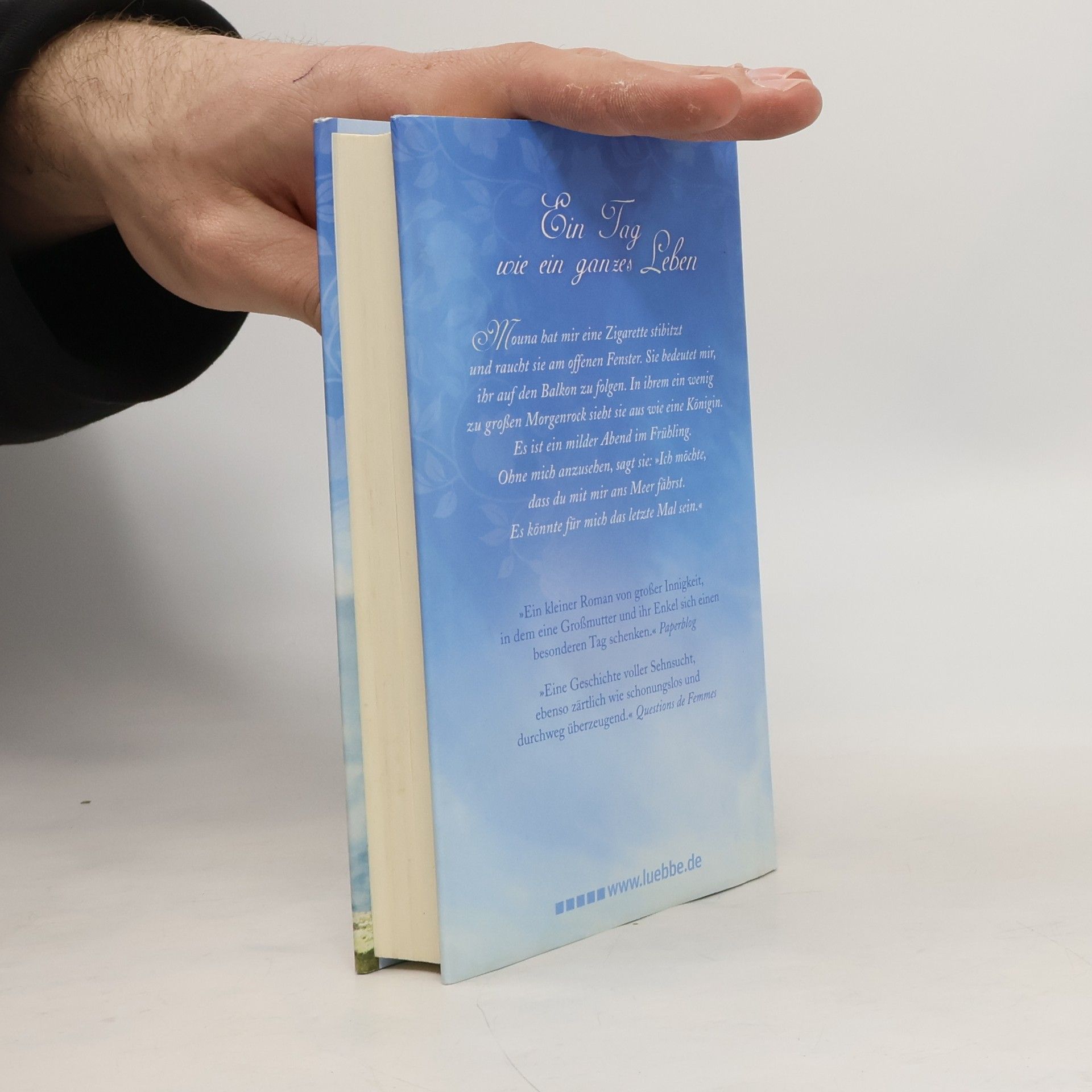 Mouna hat mir eine Zigarette stibitzt und raucht sie am offenen Fenster. Sie bedeutet mir, ihr auf den Balkon zu folgen. In ihrem ein wenig zu großen Morgenrock sieht sie aus wie eine Königin. Es ist ein milder Abend im Frühling. Ohne mich anzusehen, sagt sie: »Ich möchte, dass du mit mir ans Meer fährst. Es könnte für mich das letzte Mal sein.« Ein kleiner Roman von großer Innigkeit, in dem eine Großmutter und ihr Enkel sich einen besonderen Tag schenken. Paperblog Eine Geschichte voller Sehnsucht, ebenso zärtlich wie schonungslos und durchweg überzeugend. Questions de Femmes