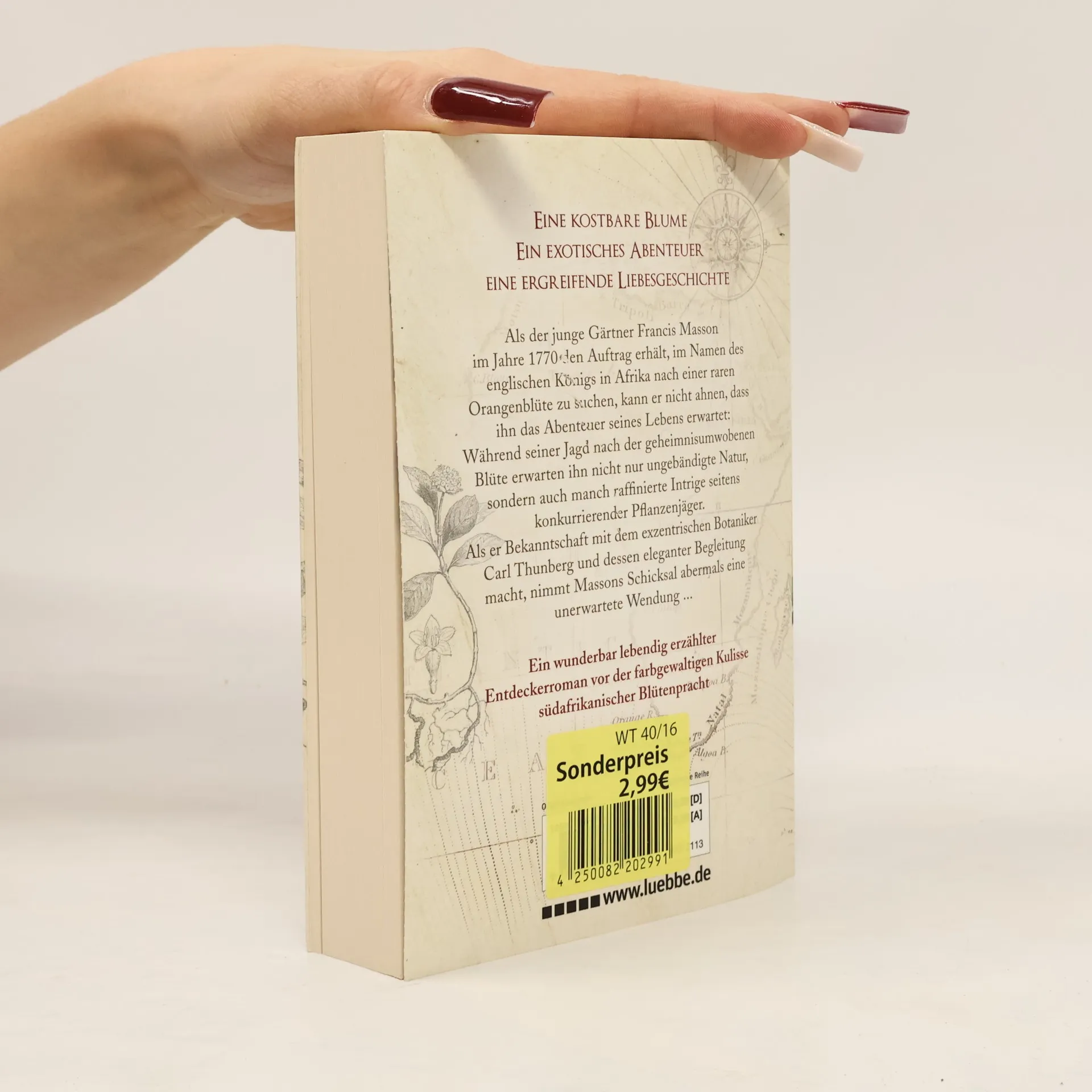 Als der junge Gärtner Francis Masson im Jahre 1770 den Auftrag erhält, im Namen des englischen Königs in Afrika nach einer raren Orangenblüte zu suchen, kann er nicht ahnen, dass ihn das Abenteuer seines Lebens erwartet: Während seiner Jagd nach der geheimnisumwobenen Blüte erwarten ihn nicht nur ungebändigte Natur, sondern auch manch raffinierte Intrige seitens konkurrierender Pflanzenjäger. Als er Bekanntschaft mit dem exzentrischen Botaniker Carl Thunberg und dessen eleganter Begleitung macht, nimmt Massons Schicksal abermals eine unerwartete Wendung ... Ein wunderbar lebendig erzählter Entdeckerroman vor der farbgewaltigen Kulisse südafrikanischer Blütenpracht
