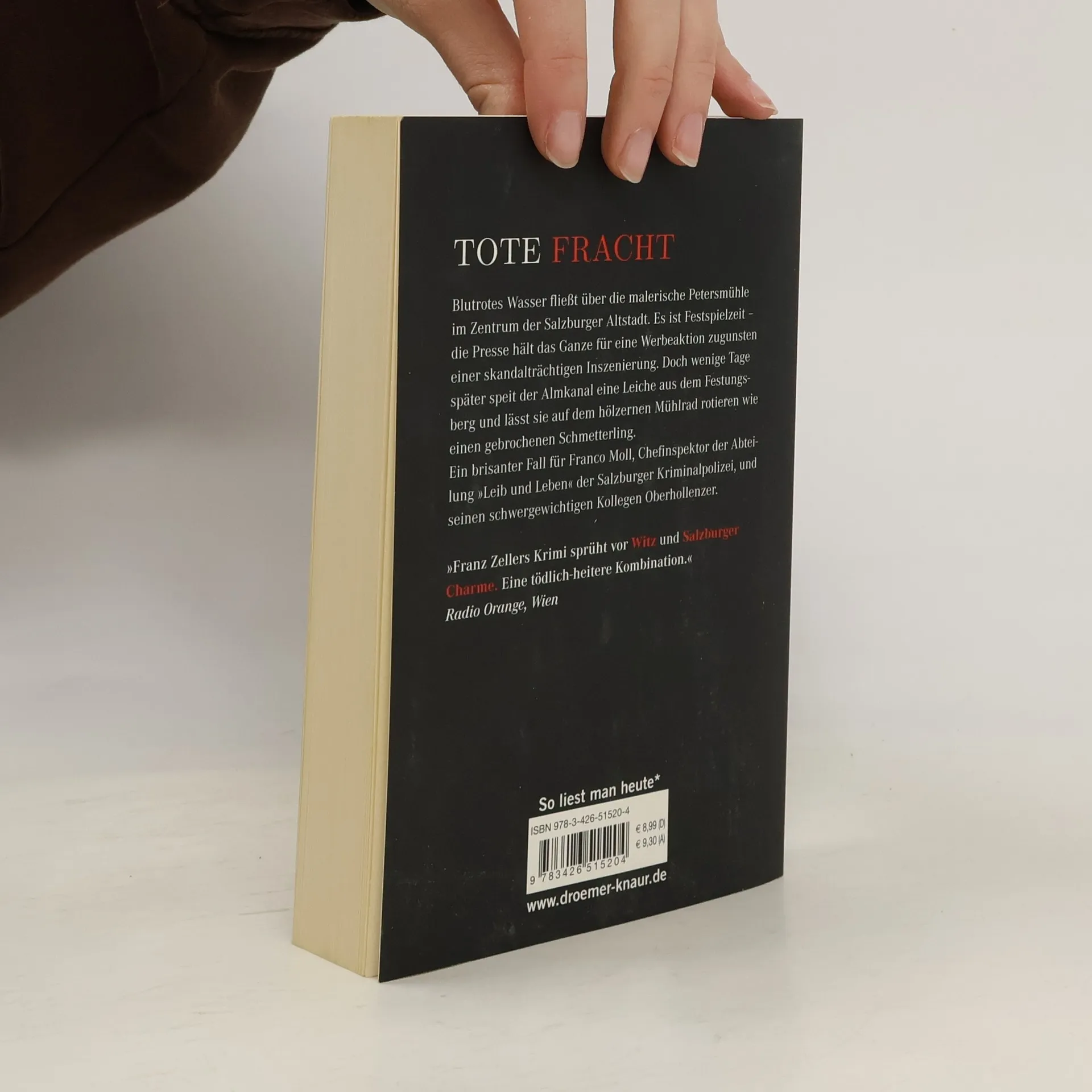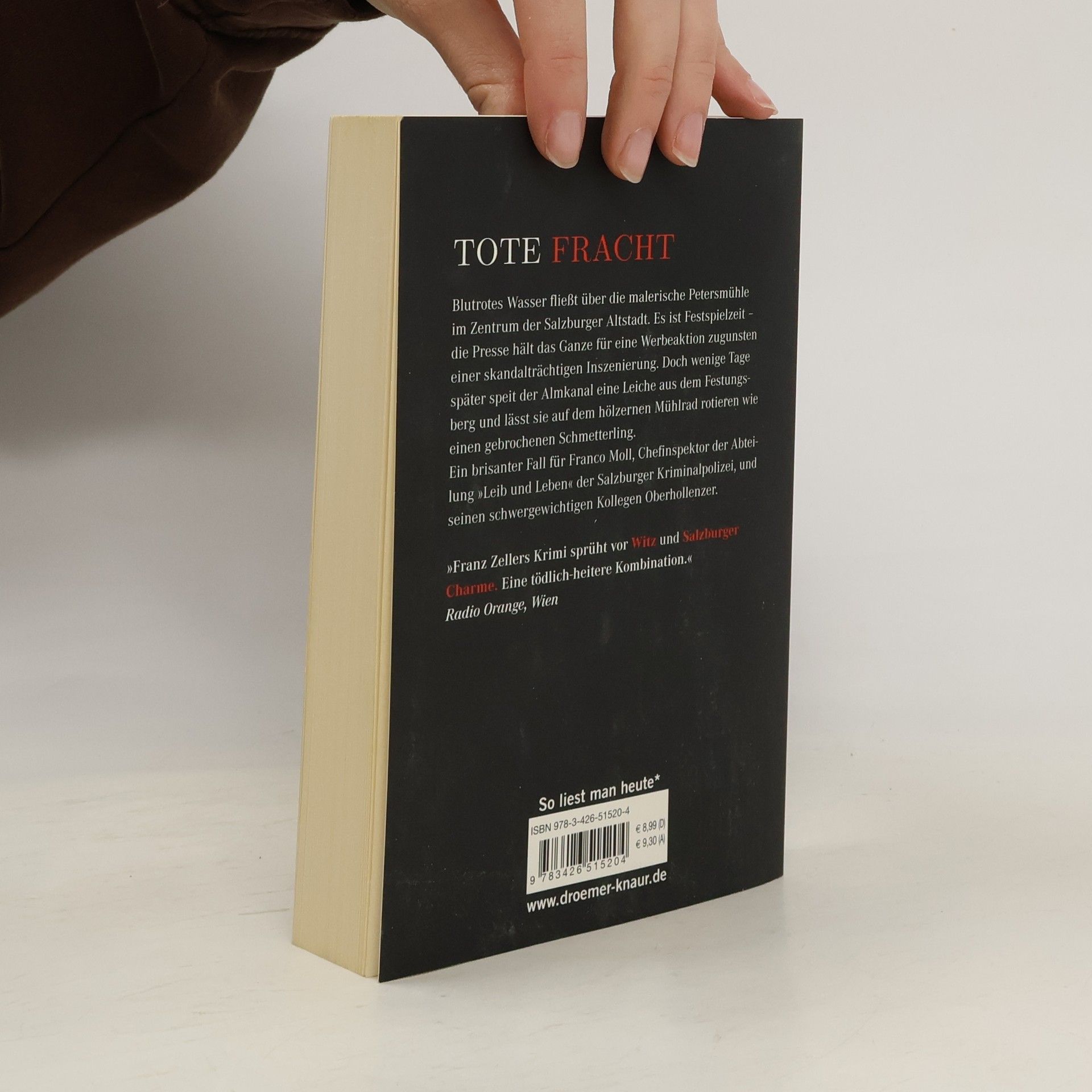 Blutrotes Wasser fließt über die malerische Petersmühle im Zentrum der Salzburger Altstadt. Es ist Ende Juli, die Festspiele haben bereits begonnen. Die Journaille hält das grausliche Intermezzo für eine Werbeaktion zugunsten einer skandalträchtigen Inszenierung. Doch wenige Tage später speit der Almkanal eine Leiche aus dem Festungsberg und lässt sie auf dem Mühlrad rotieren wie einen gebrochenen Schmetterling.