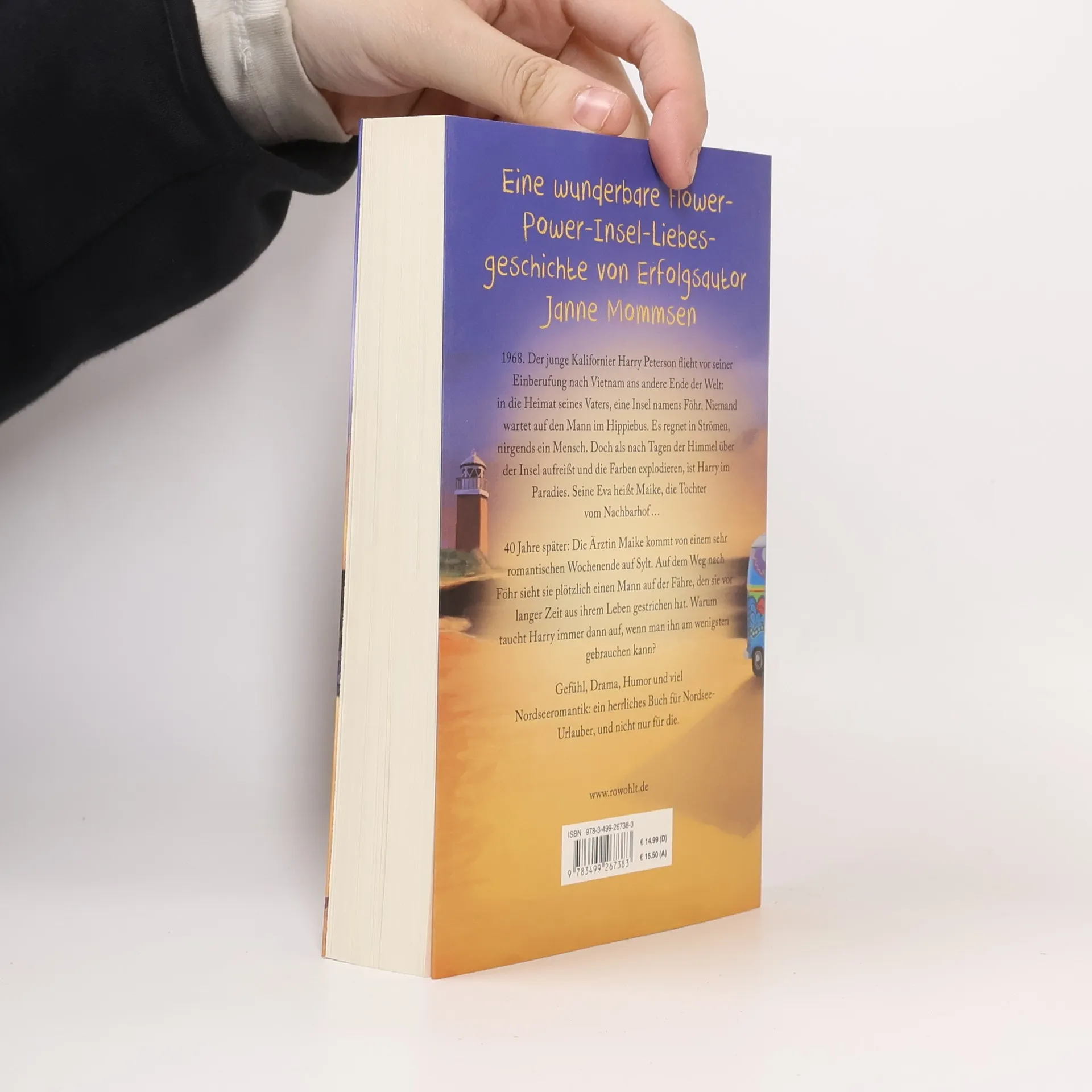 Eine wunderbare Flower-Power-Insel-Liebesgeschichte von Erfolgsautor Janne Mommsen 1968. Der junge Kalifornier Harry Peterson flieht vor seiner Einberufung nach Vietnam ans andere Ende der Welt: in die Heimat seines Vaters, eine Insel namens Föhr. Niemand wartet auf den Mann im Hippiebus. Es regnet in Strömen, nirgends ein Mensch. Doch als nach Tagen der Himmel über der Insel aufreißt und die Farben explodieren, ist Harry im Paradies. Seine Eva heißt Maike, die Tochter vom Nachbarhof … 40 Jahre später: Die Ärztin Maike kommt von einem sehr romantischen Wochenende auf Sylt. Auf dem Weg nach Föhr sieht sie plötzlich einen Mann auf der Fähre, den sie vor langer Zeit aus ihrem Leben gestrichen hat. Warum taucht Harry immer dann auf, wenn man ihn am wenigsten gebrauchen kann? Gefühl, Drama, Humor und viel Nordseeromantik: Ein herrliches Buch für Nordsee-Urlauber, aber nicht nur für die.