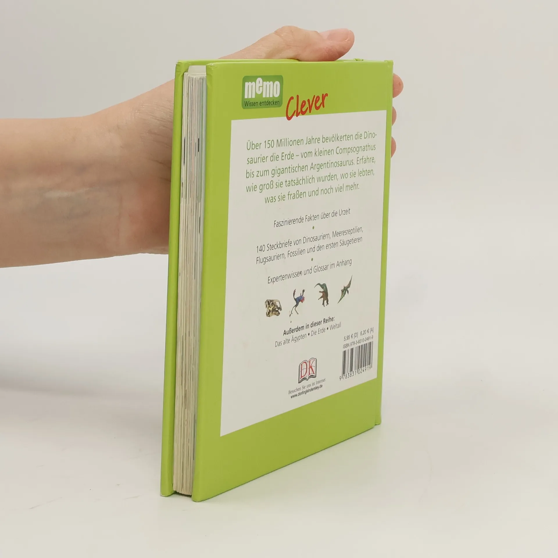 Das schlaue Taschenlexikon! Kurz und kompakt - clever verpackt: Das ist die Reihe memo Clever! Das schlaue Taschenlexikon bietet Fakten und Rekorde zum Lieblingsthema Dinosaurier. Hier erfahren Kinder alles über Dinos, wie groß sie tatsächlich waren, wo sie lebten, was sie fraßen und noch viel mehr. 140 Steckbriefe von Dinosauriern, Meeresreptilien, Fossilien und den ersten Säugetieren verraten Wissenswertes über diese spannenden Lebenwesen. Kurze, informative Texte führen in das Thema ein und geben einen Überblick. Eindrucksvolle Bilder erleichtern das Verständnis und wecken das Interesse, sich mit dem Thema intensiver auseinanderzusetzen. Im Anhang werden jeweils noch einmal Rekorde und erstaunliche Fakten präsentiert. Ein umfangreiches Glossar und ein ausführliches Register machen memo Clever zum idealen Nachschlagewerk für alle, die es ganz genau wissen wollen. Ab 8 Jahren