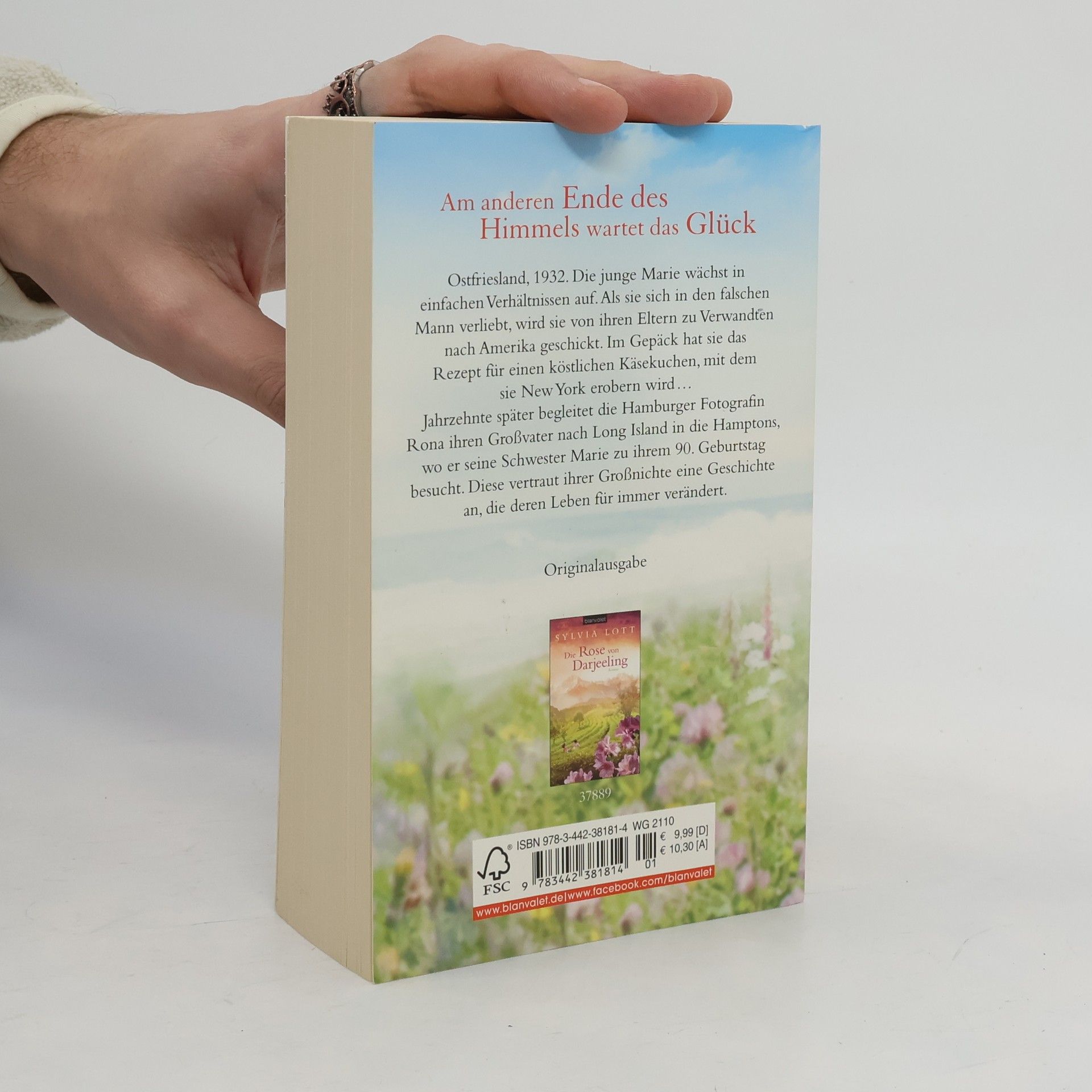 Am anderen Ende des Himmels wartet das Glück Ostfriesland, 1932. Die junge Marie wächst in einfachen Verhältnissen auf. Als sie sich in den falschen Mann verliebt, wird sie von ihren Eltern zu Verwandten nach Amerika geschickt. Im Gepäck hat sie ein gebrochenes Herz – und das Rezept für einen köstlichen Käsekuchen. Sie ahnt nicht, dass sie damit New York im Sturm erobern wird … Jahrzehnte später begleitet die Hamburger Fotografin Rona ihren Großvater nach Long Island, wo er seine Schwester Marie zu ihrem 90. Geburtstag besucht. Diese vertraut ihrer Großnichte eine Geschichte an, die deren Leben verändert…