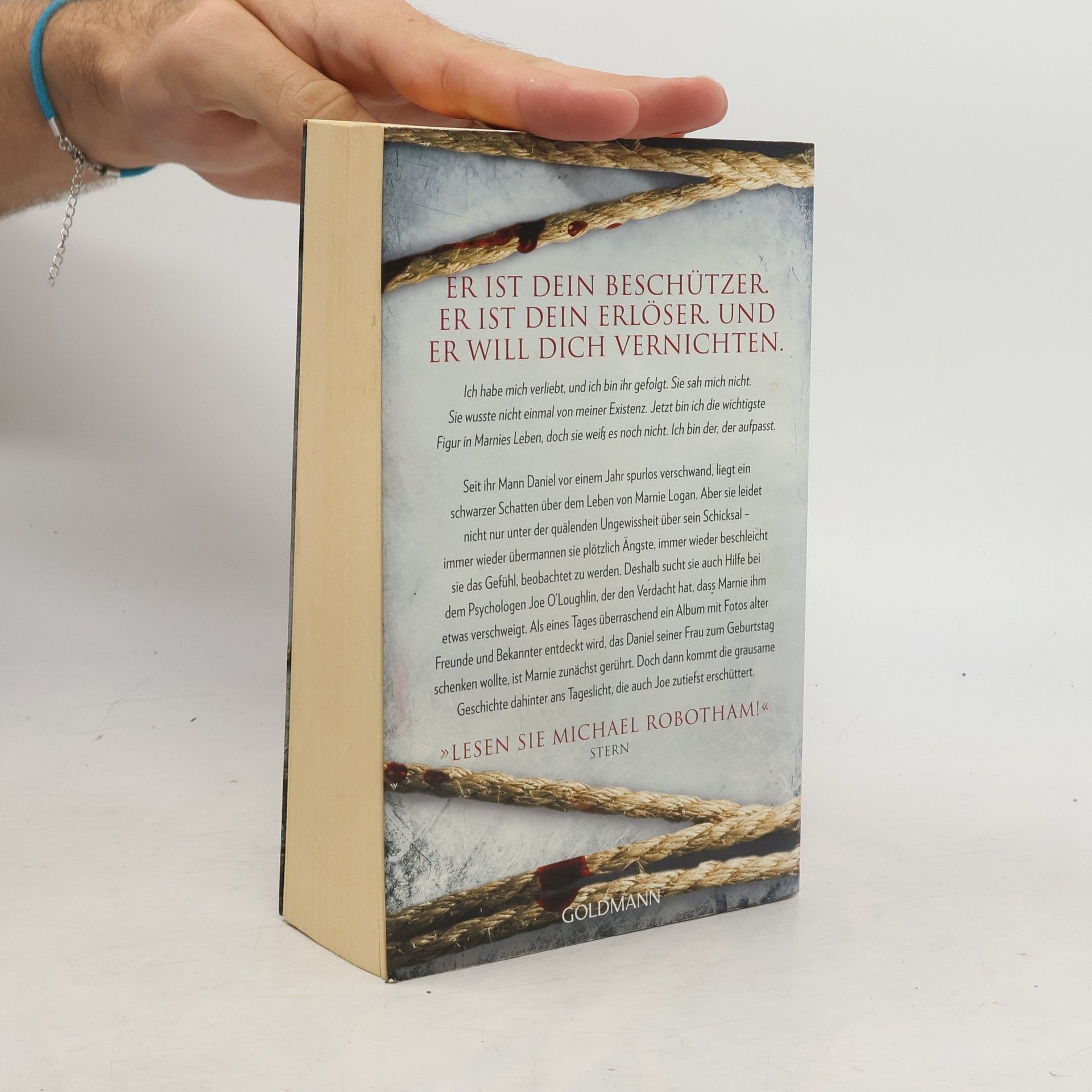 Er ist dein Beschützer. Er ist dein Erlöser. Und er will dich vernichten. Ich habe mich verliebt, und ich bin ihr gefolgt. Sie sah mich nicht. Sie wusste nicht einmal von meiner Existenz. Jetzt bin ich die wichtigste Figur in Marnies Leben, doch sie weiß es noch nicht. Ich bin der, der aufpasst. Seit ihr Mann Daniel vor einem Jahr spurlos verschwand, liegt ein schwarzer Schatten über dem Leben von Marnie Logan. Aber sie leidet nicht nur unter der quälenden Ungewissheit über sein Schicksal - immer wieder übermannen sie plötzlich Ängste, immer wieder beschleicht sie das Gefühl, beobachtet zu werden. Deshalb sucht sie auch Hilfe bei dem Psychologen Joe O’Loughlin, der aber schnell den Verdacht hat, dass Marnie ihm etwas verschweigt. Als eines Tages überraschend ein Album mit Fotos alter Freunde und Bekannter entdeckt wird, das Daniel seiner Frau zum Geburtstag schenken wollte, ist Marnie zunächst gerührt. Doch dann kommt die grausame Geschichte dahinter ans Tageslicht, die auch Joe zutiefst erschüttert.