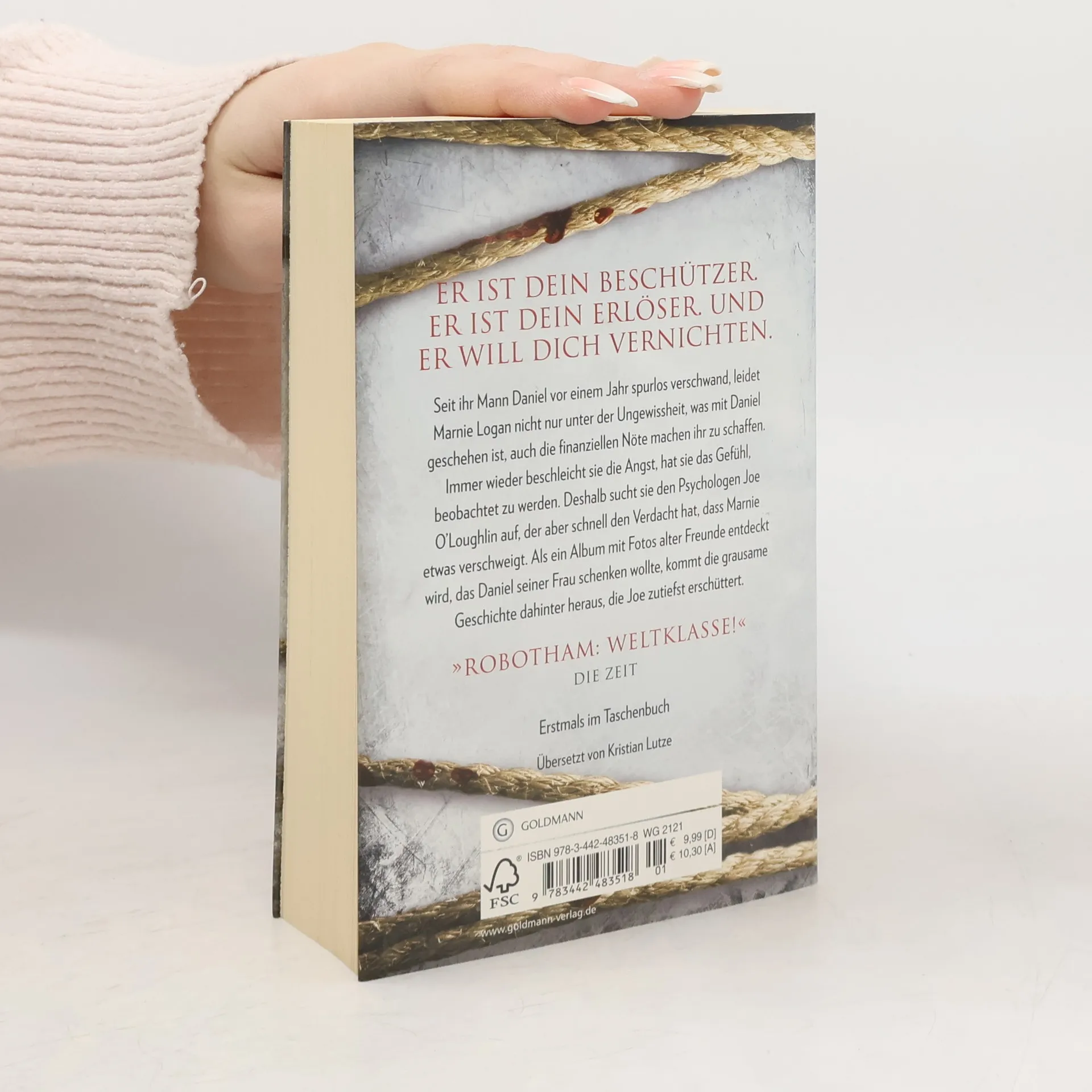 "Michael Robothams Thrillerreihe um den an Parkinson erkrankten Psychotherapeuten Joe O'Loughlin ist ultraspannend." Sebastian Fitzek Seit ihr Mann Daniel vor einem Jahr spurlos verschwand, leidet Marnie Logan nicht nur unter der Ungewissheit, was mit Daniel geschehen ist, auch die finanziellen Nöte machen ihr zu schaffen. Immer wieder beschleicht sie die Angst, hat sie das Gefühl, beobachtet zu werden. Deshalb sucht sie den Psychologen Joe O’Loughlin auf, der aber schnell den Verdacht hat, dass Marnie etwas verschweigt. Als ein Album mit Fotos alter Freunde entdeckt wird, das Daniel seiner Frau schenken wollte, kommt die grausame Geschichte dahinter heraus, die Joe zutiefst erschüttert. Der neunte Band der Erfolgsserie um den Psychologen Joe O'Loughlin.