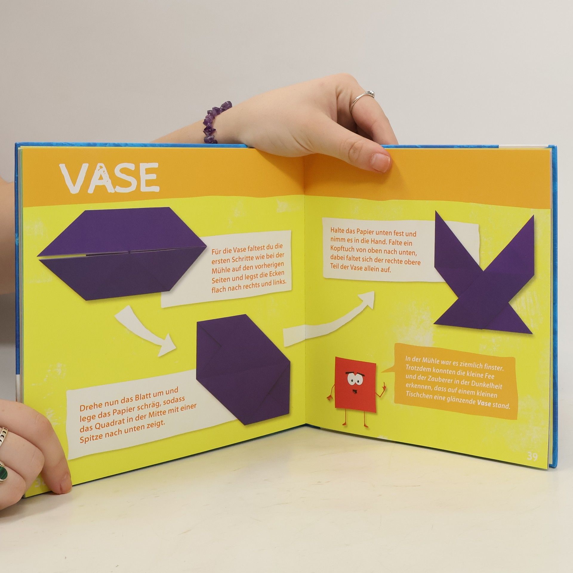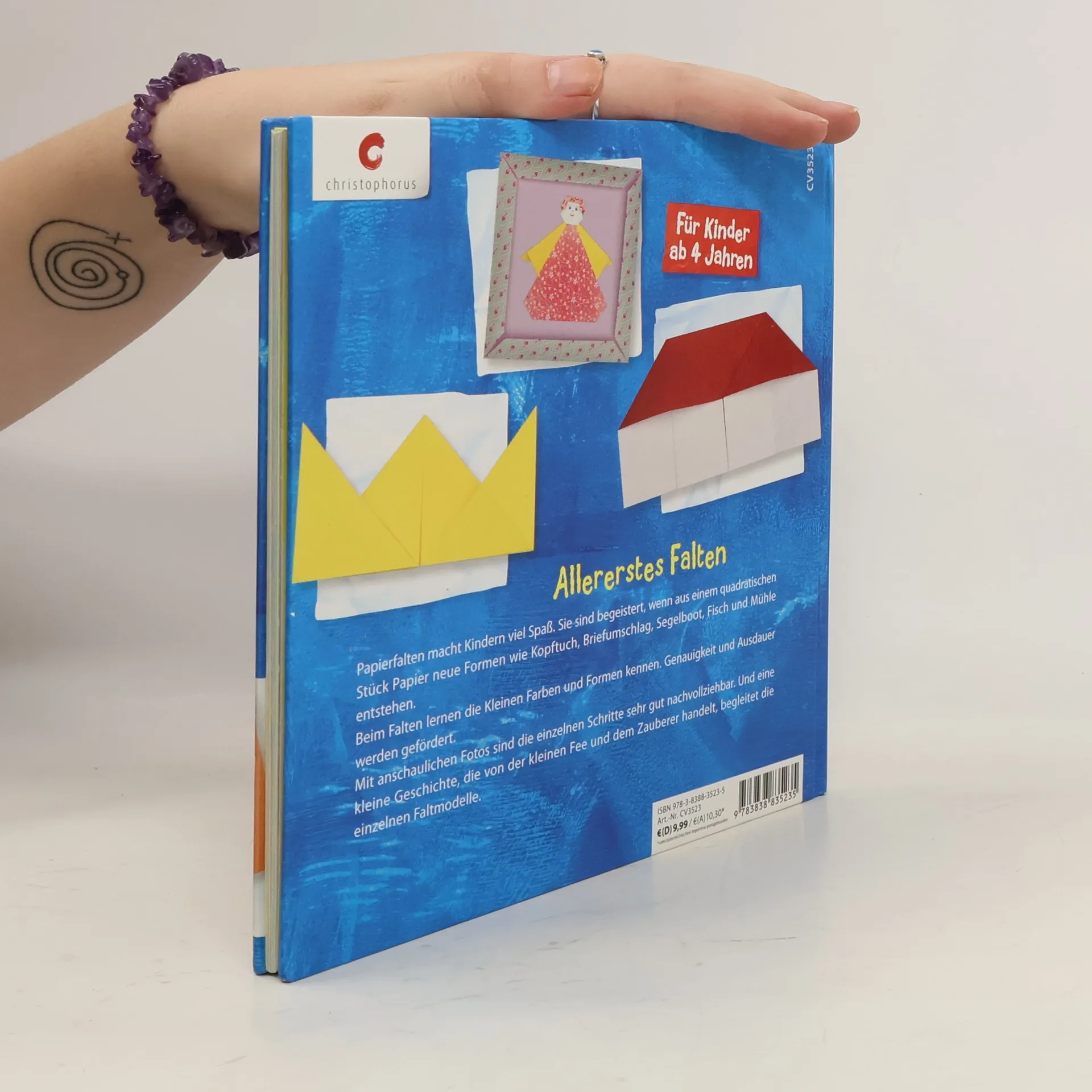 Allererstes Falten. Papierfalten macht Kindern viel Spaß. Sie sind begeistert, wenn aus einem quadratischen Stück Papier neue Formen wie Kopftuch, Briefumschlag, Spiegel, Segelboot, Fisch und Mühle entstehen. Beim Falten lernen die Kleinen Farben und Formen kennen, Ausdauer und Genauigkeit werden gefördert. Mit anschaulichen Fotos sind die einzelnen Faltschritte sehr gut nachvollziehbar. Und eine kleine Fee begleitet die einzelnen Faltmodelle mit einer Geschichte.