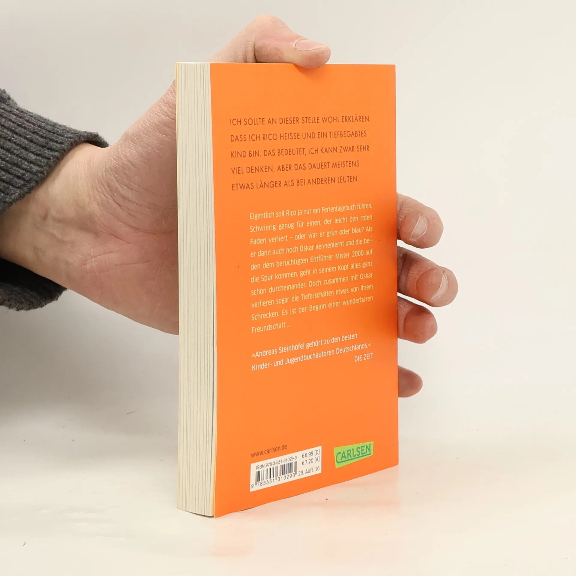 Band 1 der preisgekrönten und verfilmten Abenteuer mit Rico und Oskar Eigentlich soll Rico ja nur ein Ferientagebuch führen. Aber für einen, der ständig den Faden verliert, ist das gar nicht so leicht! Als er dann auch noch Oskar mit dem blauen Helm kennenlernt und die beiden dem berüchtigten ALDI-Kidnapper auf die Spur kommen, weiß Rico gar nicht mehr, wo vorne und hinten ist. Wenigstens verlieren mit Oskar die Tieferschatten etwas von ihrem Schrecken - und so entsteht aus dem ganzen Chaos eine wunderbare Freundschaft. »Fantasievoll, rührend, lustig. Einfach schön.« DER SPIEGEL Alle Bücher über Rico und Oskar: Rico, Oskar und die Tieferschatten (Band 1)Rico, Oskar und das Herzgebreche (Band 2)Rico, Oskar und der Diebstahlstein (Band 3)Rico, Oskar und das Vomhimmelhoch (Band 4) Kindercomics:Rico & Oskar – Fische aus Silber Rico & Oskar – Die RegenhütteRico & Oskar – Die perfekte ArschbombeRico & Oskar – Die Sache mit den Öhrchen