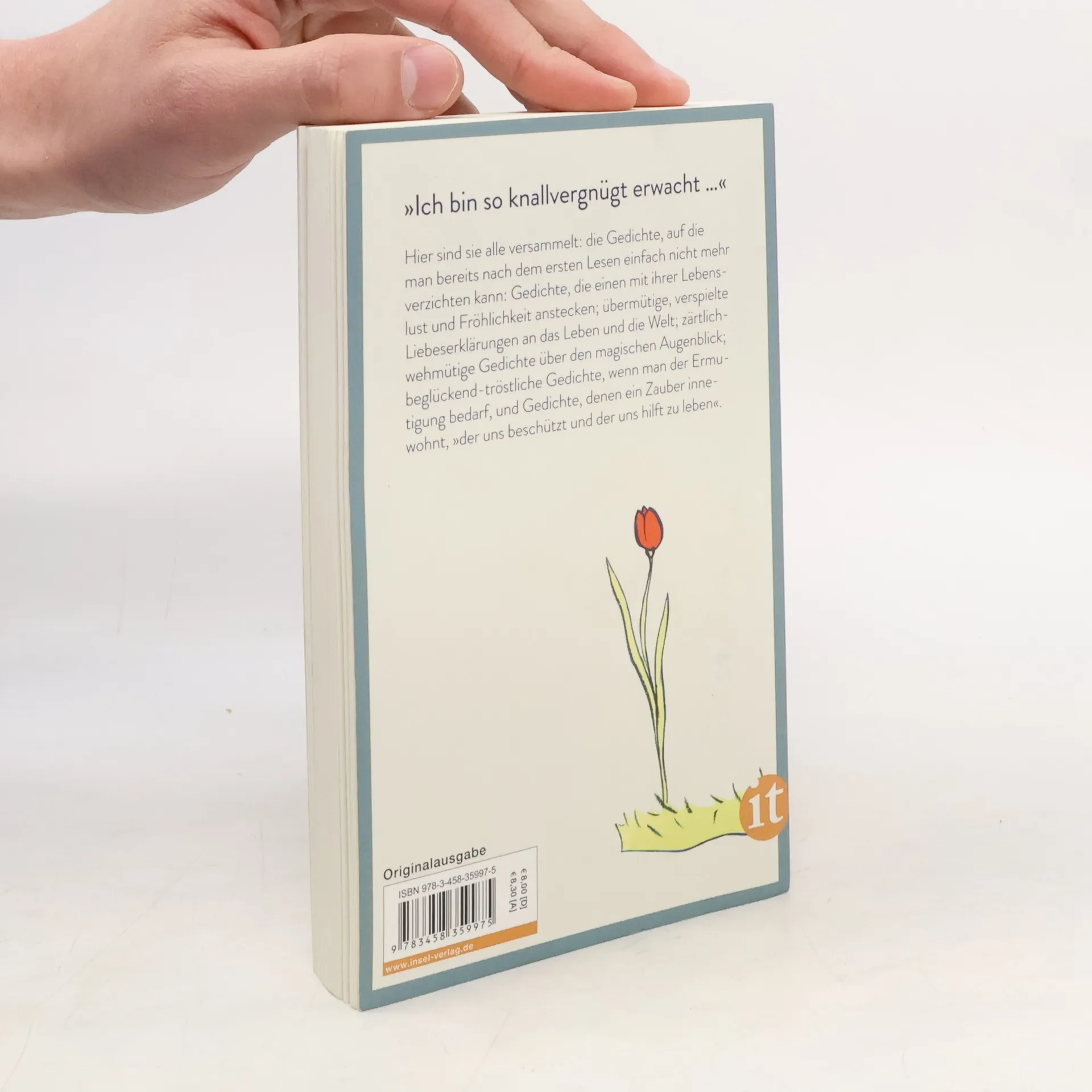Hier sind sie versammelt – die Gedichte, auf die man bereits nach dem ersten Lesen einfach nicht mehr verzichten möchte: Gedichte, deren Lebenslust und Fröhlichkeit sich unmittelbar auf einen übertragen, verspielte Liebeserklärungen an das Leben und die Welt; zärtliche, traurig-schöne Gedichte, die versonnen der Erinnerung an den unwiederbringlichen, magischen Augenblick hingegeben sind; beglückend-tröstliche Gedichte, die man vor sich hinflüstert, wenn man der Ermutigung bedarf; Gedichte, denen ein Zauber innewohnte, »der uns beschützt und der uns hilft zu leben«. Mit Gedichten von Ilse Aichinger, Rose Ausländer, Elisabeth Borchers, Bertolt Brecht, Robert Gernhardt, Johann Wolfgang Goethe, Heinrich Heine, Hermann Hesse, Mascha Kaléko, Erich Kästner, Angela Krauß, Christian Morgenstern, Rainer Maria Rilke, Joachim Ringelnatz, Peter Rühmkorf, Eva Strittmatter u. v. a.