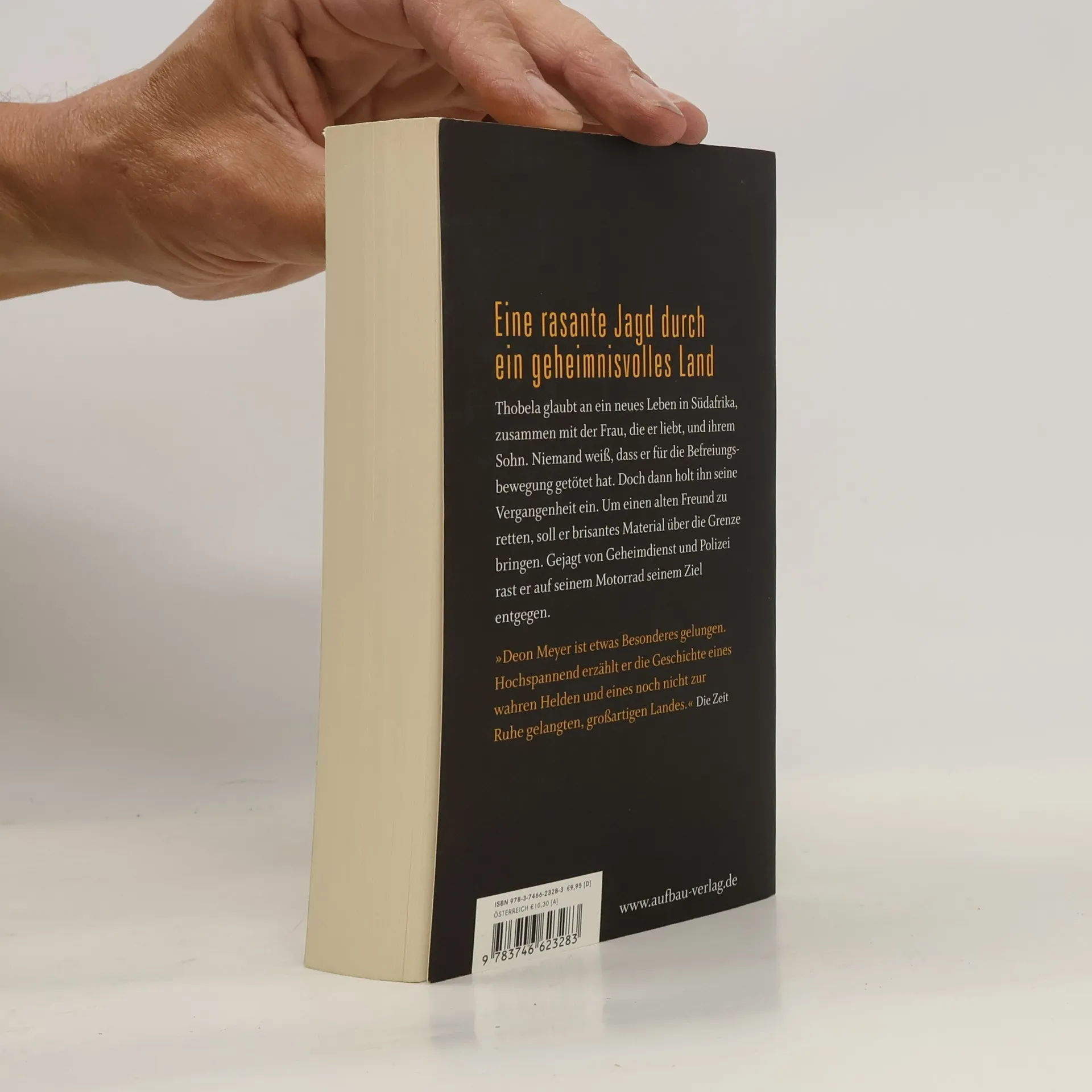 Eine rasante Flucht durch ein gefährliches Land Spannung. Action. Südafrika. Deon Meyer „Ein brillantes Buch. Ein wunderbarer Held.“ Michael Ridpath Thobela führt ein bürgerliches Leben in Kapstadt, Südafrika. Er ist in Miriam verliebt, kümmert sich um deren Sohn und arbeitet in einer Motorradwerkstatt. Niemand weiß, daß Thobela ein Killer war, der im Namen der Befreiungsbewegung tötete. Bis eines Tages die Tochter eines alten Freundes vor seiner Tür steht. Ihr Vater, ein ehemaliger Regierungsbeamter, ist gekidnappt worden, weil er eine Festplatte mit belastendem Material besitzt. Thobela eilt seinem Freund zu Hilfe, doch schon am Flughafen wird er vom südafrikanischen Geheimdienst abgefangen. Es gelingt ihm zu fliehen - und nach langer Zeit erwachen seine alten Instinkte wieder. Auf einem Motorrad jagt er quer durch das Land. Deon Meyer ist mit „Das Herz des Jägers“ nicht nur ein außergewöhnlicher Thriller mit einem besonderen Helden gelungen - er führt dem Leser auch vor Augen, welche Veränderungen Südafrika in den letzten Jahren erfahren hat. „Deon Meyer zeigt uns auf spannende Weise, wie Südafrika riecht, schmeckt und klingt. Unwiderstehlich, tragisch, komisch.“ Chicago Tribune „Ein Thriller über das neue Südafrika nach der Apartheid, der gut genug ist, in einem Atemzug mit John le Carré genannt zu werden … “ Kirkus Reviews „Deon Meyer hat mich sofort am Haken gehabt. Eine Geschichte mit Tiefgang.“ Michael Connelly "'Das Herz des Jägers' ist ein brillantes Buch. Es ist großartig, wie Deon Meyer Charaktere beschreibt, die alle von den großen Veränderungen in Südafrika geprägt sind. Und Thobela, ein Riese von einem Mann, der nichts als Frieden und Erlösung sucht, ist ein wunderbarer Held.„ Michael Ridpath Deon Meyer ist mit “Das Herz des Jägers" nicht nur ein außergewöhnlicher Thriller mit einem besonderen Helden gelungen - er führt dem Leser auch vor Augen, welche tiefgreifenden Veränderungen Südafrika in den letzten Jahren erfahren hat.