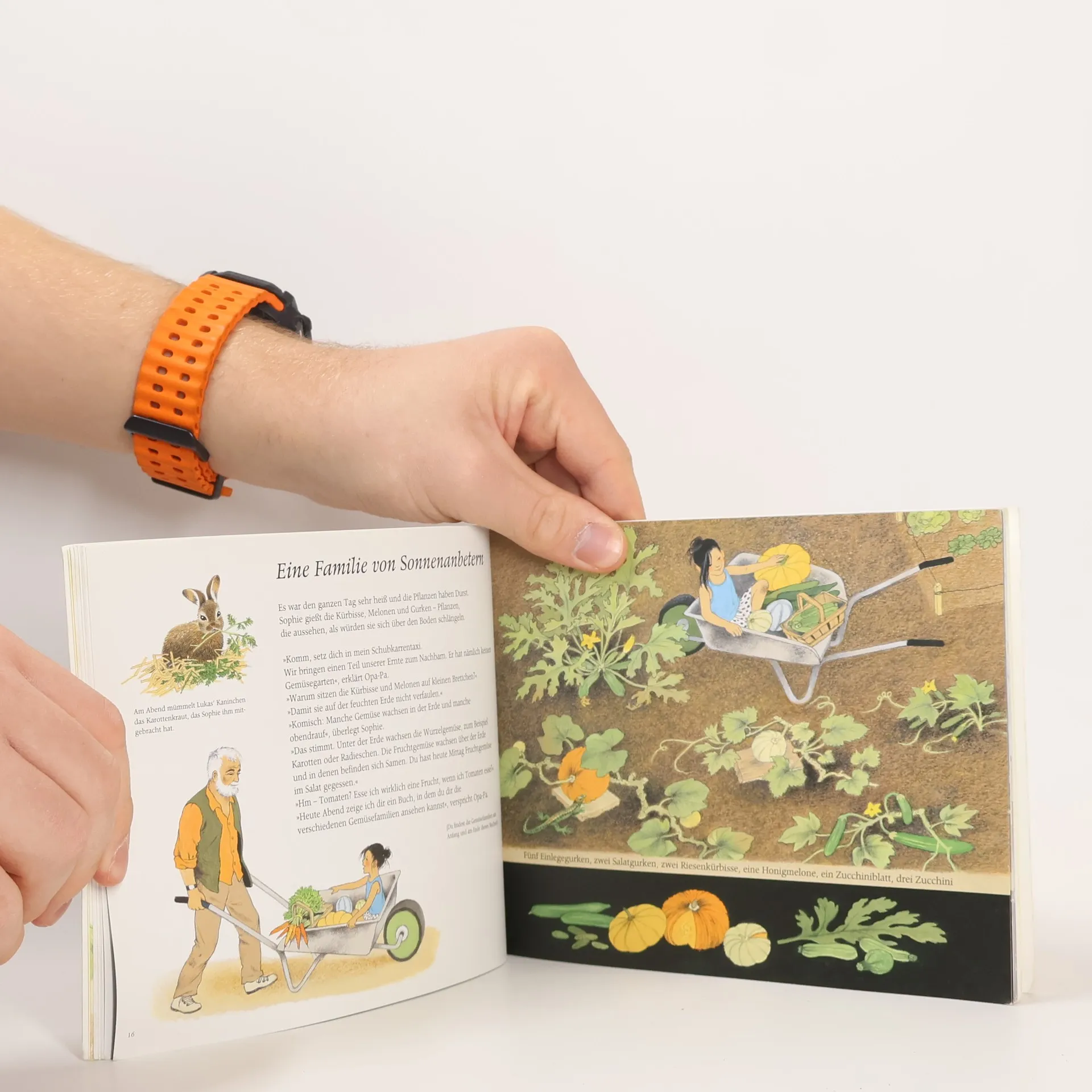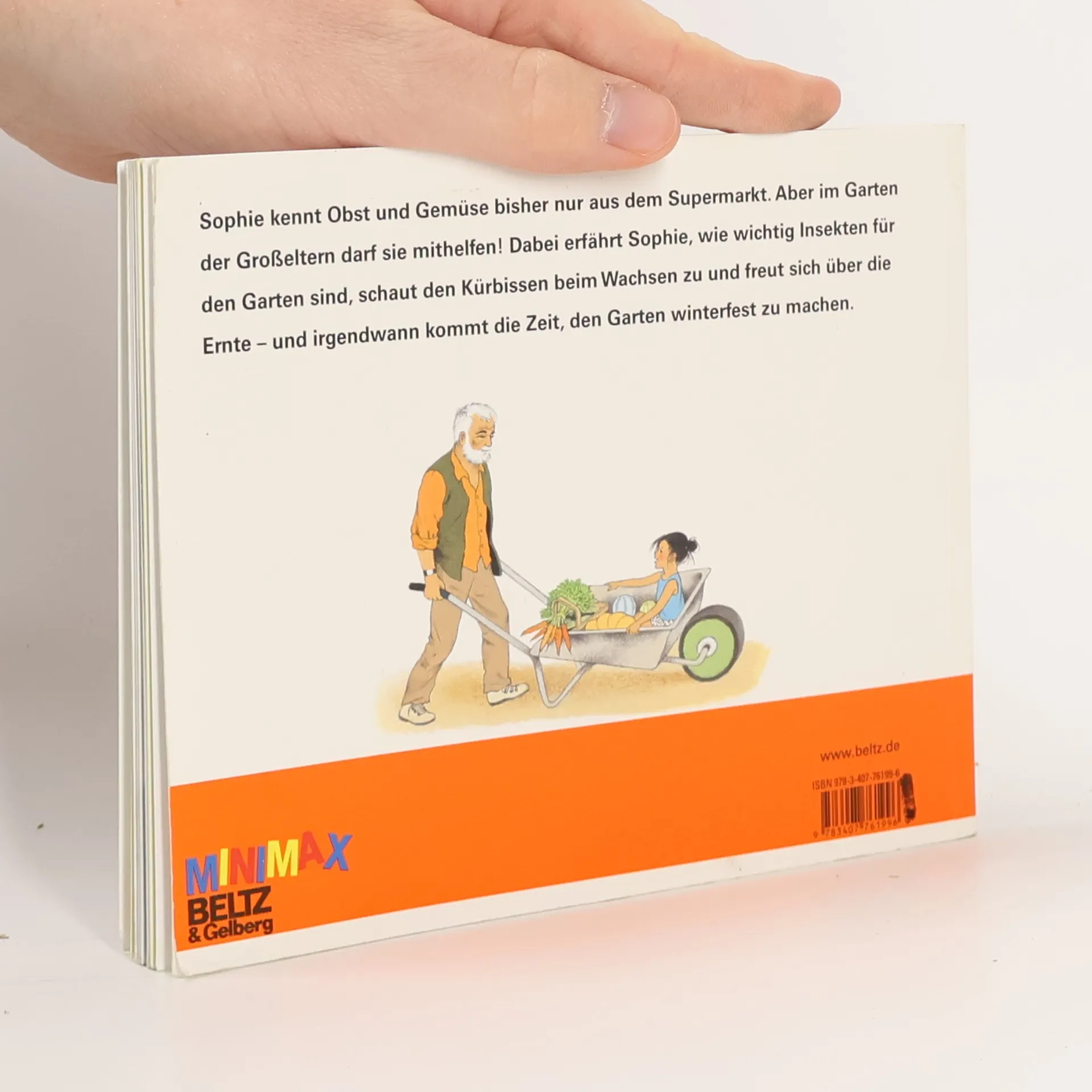Ein Bilderbuch für kleine Gärtner und für solche, die es gerne werden wollen. Sophie kennt Gemüse nur aus dem Supermarkt. Doch in diesem Jahr verbringt sie ganz viel Zeit bei den Großeltern. Die haben einen großen Garten, in dem Kartoffeln und Mais, Tomaten, Erbsen, Paprika und Gurken wachsen. Sophie lernt, was alles zu tun ist, bevor man ernten kann: Sie sät Radieschensamen und pflanzt kleine Salate, sie darf mulchen und gießen und beobachtet dabei Marienkäfer und Regenwürmer. Sie erfährt, warum Bienen so wichtig sind und schaut den Kürbissen beim Wachsen zu, bis irgendwann die Zeit kommt, den Garten winterfest zu machen. Dieses Bilderbuch einer europäischen Grande Dame der Illustration steckt voller liebevoller Details und macht ganz unaufdringlich große Lust auf eigenes Werkeln im Garten.