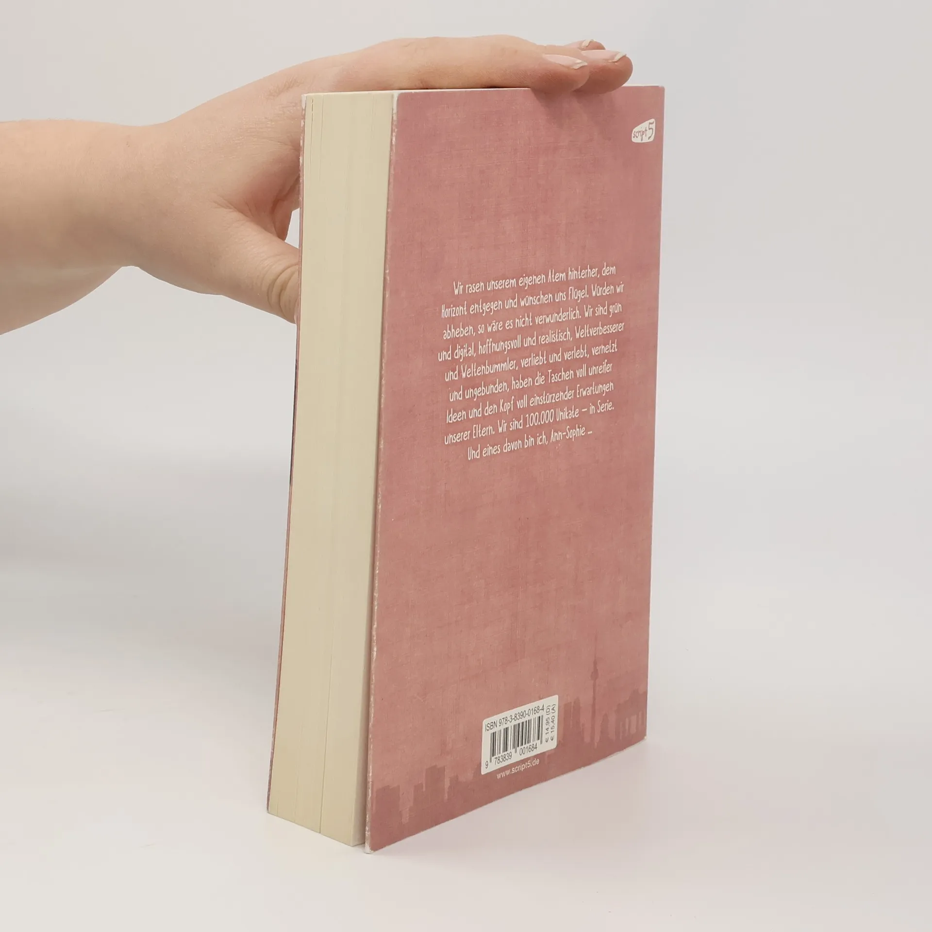 Wir rasen unserem eigenen Atem hinterher dem Horizont entgegen und wünschen uns Flügel. Würden wir abheben, so wäre es nicht verwunderlich. Wir sind grün und digital, hoffnungsvoll und realistisch, Weltverbesserer und Weltenbummler, verliebt und verlebt, vernetzt und ungebunden, haben die Taschen voll unreifer Ideen und den Kopf voll einstürzender Erwartungen unserer Eltern. Wir sind 100.000 Unikate – in Serie. Und eines davon bin ich, Ann-Sophie … Sie hat die Nase voll. Von verstaubten Ansichten und den Erwartungen, dass ihre Zukunft eine ausgeblichene Version des Lebens ihrer Eltern sein soll – nur mit Facebook-Profil und Twitter-Updates auf den neuesten Stand gebracht. Hals über Kopf flüchtet die 20-jährige Ann-Sophie nach Berlin, 644 Kilometer weit von den Eltern entfernt und um 3,5 Millionen Einwohner größer als ihr Heimatkaff. Dort hofft sie herauszufinden, was sie vom Leben will. Doch wie macht man das in einer Welt der unendlichen Möglichkeiten? Das belletristische Debüt der deutsch-afrikanischen Jungautorin Chantal-Fleur Sandjon ist ein unterhaltsames Portrait der Generation Y über Selbstfindung, Erwachsenwerden und das Hipster-Leben in einer Berliner WG.
