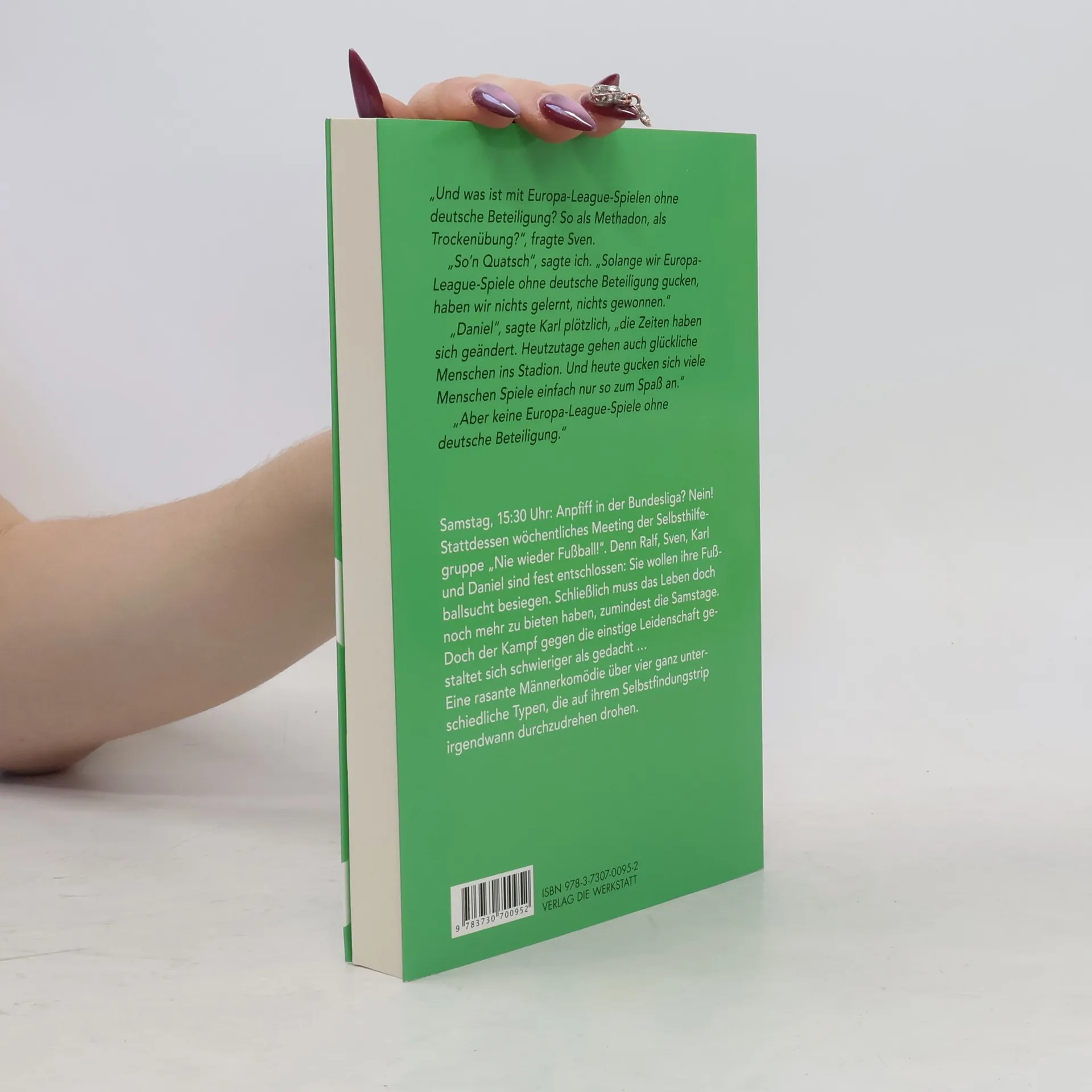 Ein ehemaliger Hertha-Hooligan, ein alternativer Werder-Fan, ein Alt-Fortune und ein Nürnberger im rheinischen Exil haben den Fußball satt. Längst ist die einstige Leidenschaft eine Sucht, die viel Zeit und Nerven raubt. Also gründen Ralf, Sven, Karl und Daniel eine Selbsthilfegruppe, um gemeinsam vom Fußball loszukommen. Jeden Samstag um 15:30 Uhr, wenn in der Bundesliga gerade angepfiffen wird, treffen sie sich und entdecken gemeinsam ungeahnte Möglichkeiten der Freizeitgestaltung. So machen sie eine Fahrradtour, besuchen einen Trödelmarkt oder gar eine Sternwarte. Beim Kampf gegen ihre Fußballsucht werden die vier jedoch auf harte Proben gestellt. Darf man den Sohn zum Training begleiten? Ist Eishockey als Ersatzdroge vertretbar? Und über was unterhält man sich jetzt nur mit Kumpanen und Kollegen? Kein Wunder, dass irgendwann die Frage auftaucht, ob man nicht eigentlich zu viel radikaleren Mitteln greifen und den Fußball an sich bekämpfen müsste … Eine rasante Männerkomödie über vier ganz unterschiedliche Typen, die auf ihrem Selbstfindungstrip irgendwann durchzudrehen drohen.