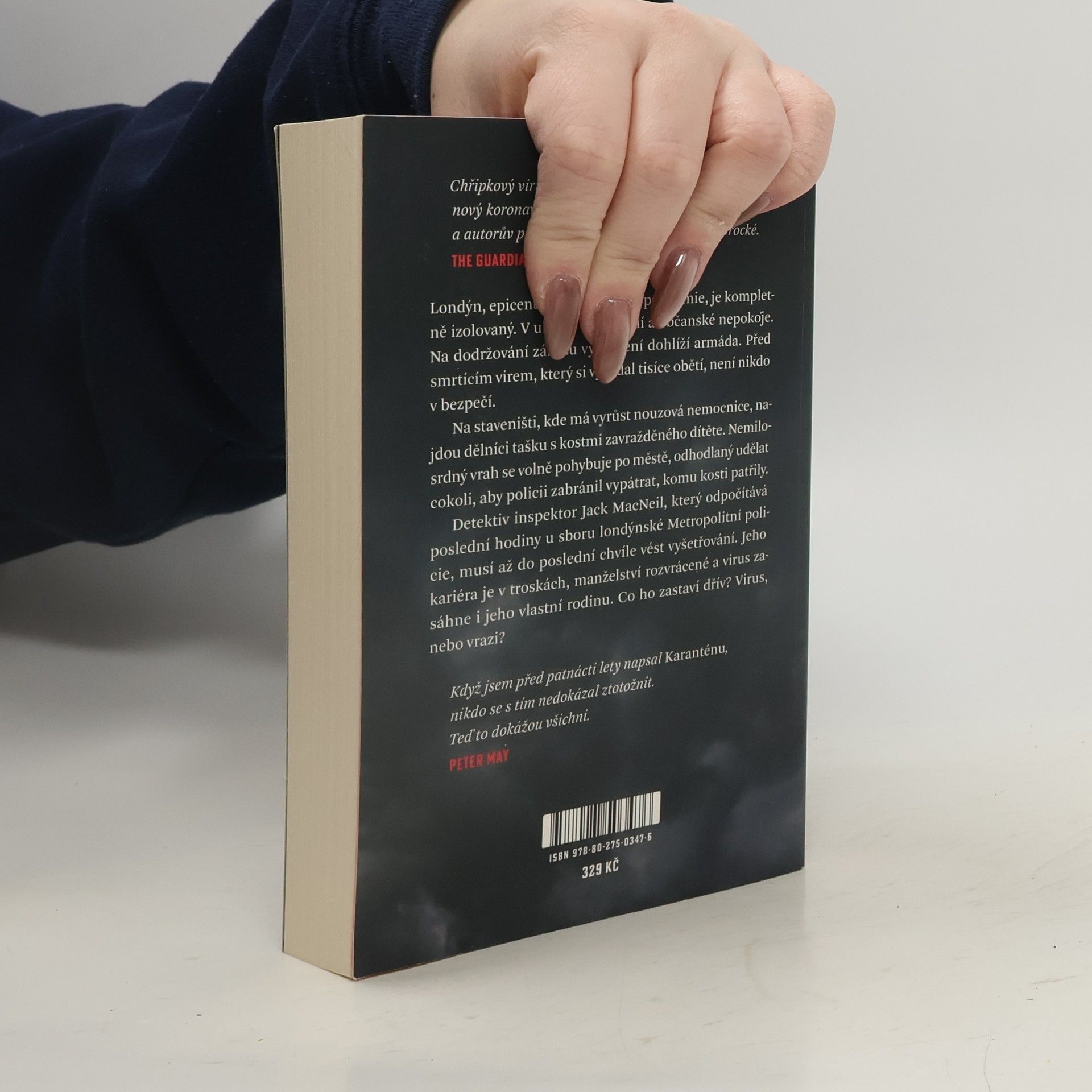 Mistr popisů Peter May rozjíždí svoje umění v kriminálně v Londýně pustošeném smrtící chřipkovou epidemií. Příběh je sice úsporný, ale napínavý a k postavám snadno přilnete.