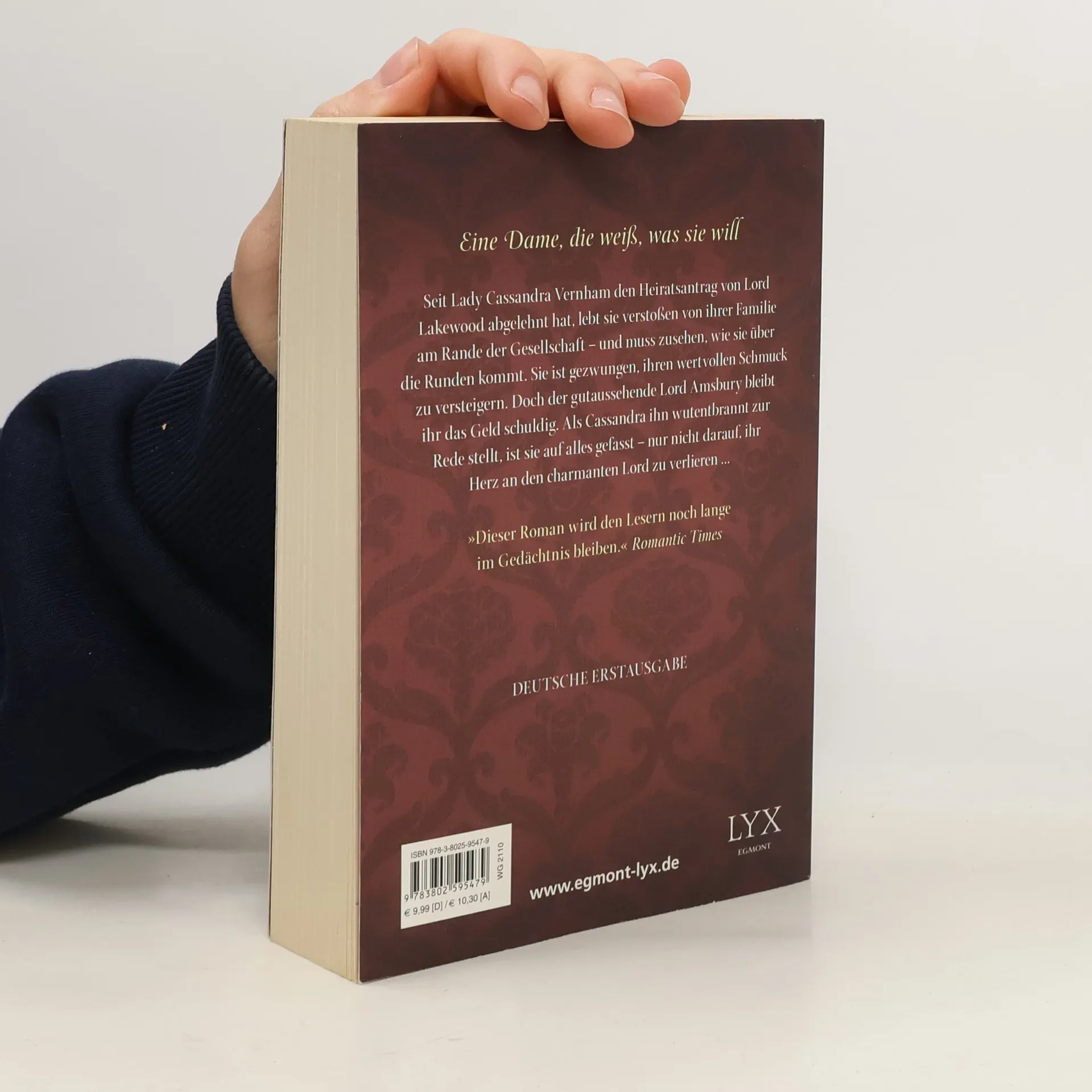 Seit Lady Cassandra Vernham den Heiratsantrag von Lord Lakewood abgelehnt hat, lebt sie verstoßen von ihrer Familie am Rande der Gesellschaft - und muss zusehen, wie sie über die Runden kommt. Sie ist gezwungen, ihren wertvollen Schmuck zu versteigern. Doch der gutaussehende Lord Amsbury bleibt ihr das Geld schuldig. Als Cassandra ihn wutentbrannt zur Rede stellt, ist sie auf alles gefasst - nur nicht darauf, ihr Herz an den charmanten Lord zu verlieren -