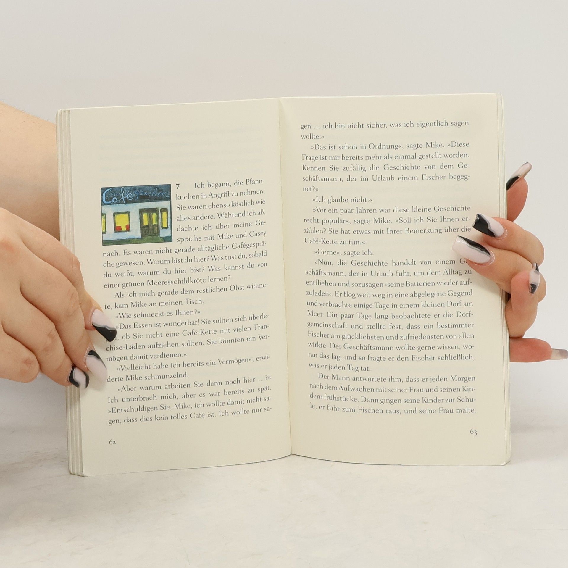 Humorvoll und anrührend Ein kleines Café mitten im Nirgendwo wird zum Wendepunkt im Leben von John, einem Werbemanager, der stets in Eile ist. Eigentlich will er nur kurz Rast machen, doch dann entdeckt er auf der Speisekarte neben dem Menü des Tages drei Fragen: »Warum bist du hier? Hast du Angst vor dem Tod? Führst du ein erfülltes Leben?« Wie seltsam – doch einmal neugierig geworden, will John mithilfe des Kochs, der Bedienung und eines Gastes dieses Geheimnis ergründen. Die Fragen nach dem Sinn des Lebens führen ihn gedanklich weit weg von seiner Vorstandsetage an die Meeresküste von Hawaii. Dabei verändert sich seine Einstellung zum Leben und zu seinen Beziehungen, und er erfährt, wie viel man von einer weisen grünen Meeresschildkröte lernen kann. So gerät diese Reise letztlich zu einer Reise zum eigenen Selbst. Ein ebenso lebendig geschriebenes, humorvolles wie anrührendes Buch. Durchgehend vierfarbig, mit Illustrationen von Root Leeb.