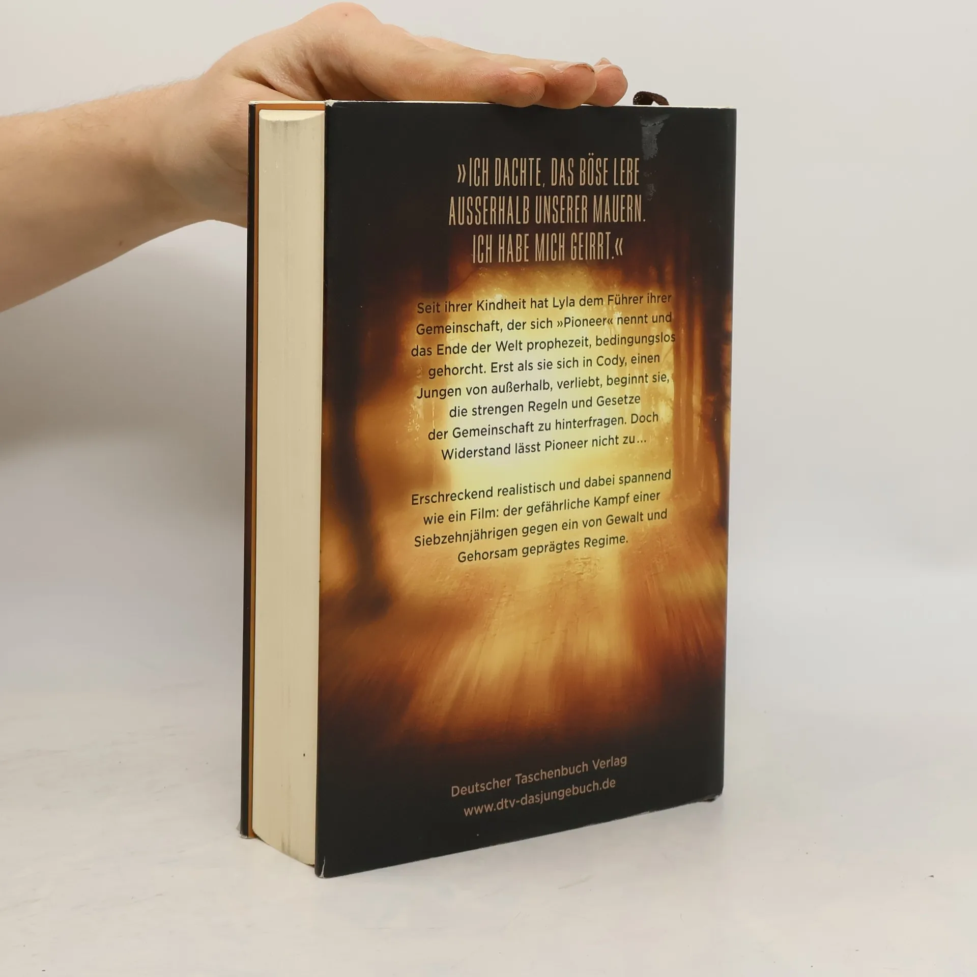 Furchterregend, bedrohlich und erschreckend wahr Bis vor Kurzem glaubte die siebzehnjährige Lyla, die Gemeinschaft von Mandrodage Meadows, in der sie mit ihrer Familie lebt, bewahre sie vor dem Bösen in der Welt und dem bevorstehenden Weltuntergang. Dann trifft sie Cody, einen Jungen von außerhalb, und stellt fest, dass sie in Wahrheit in einem perfiden Unterdrückungssystem gefangen ist. Doch Lylas Versuch, gegen Pioneer, den ebenso charismatischen wie gefährlichen Führer der Gemeinschaft, zu rebellieren, führt zum Kampf . . .