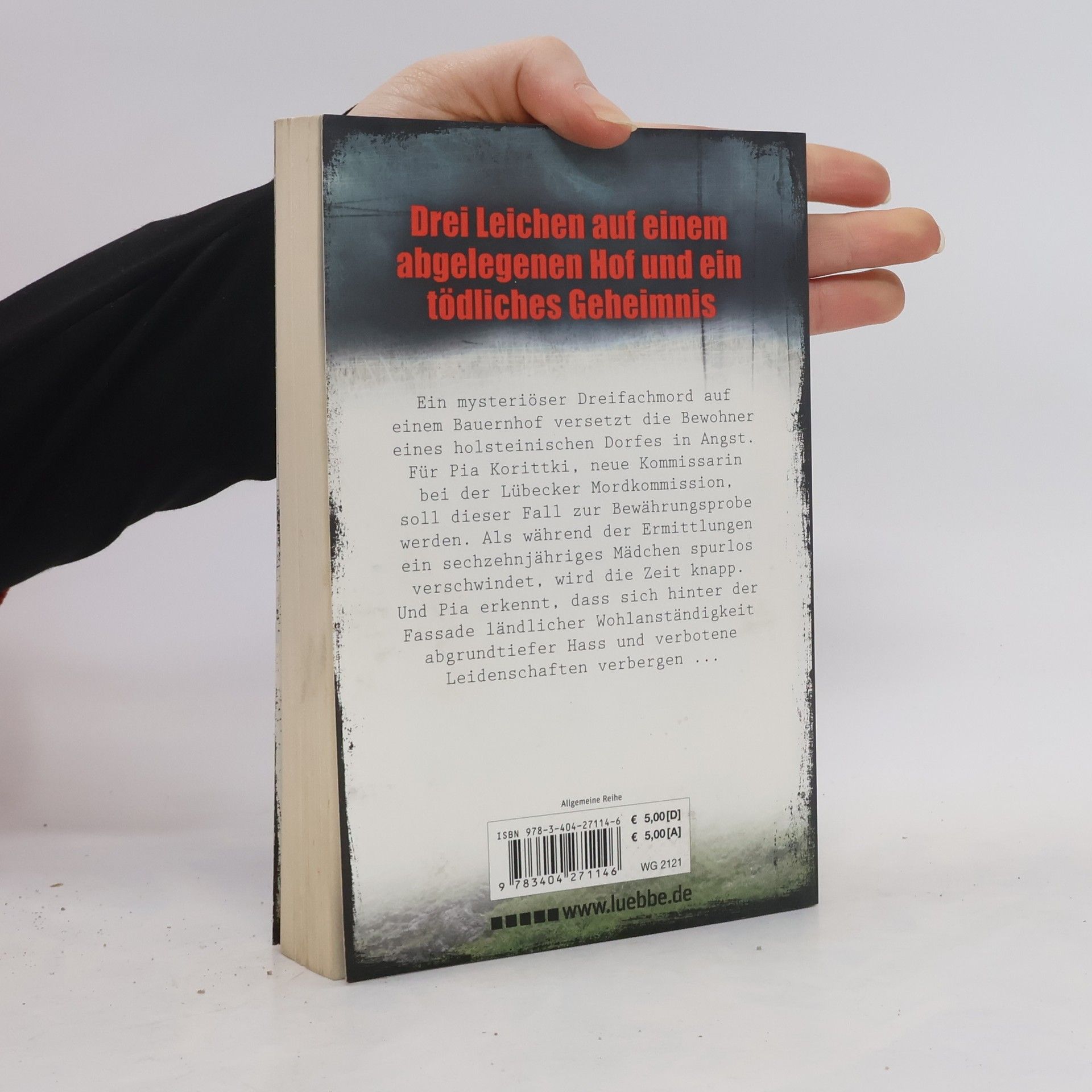 Drei Leichen auf einem abgelegenen Hof und ein tödliches Geheimnis Ein mysteriöser Dreifachmord auf einem Bauernhof versetzt die Bewohner eines holsteinischen Dorfes in Angst. Für Pia Korittki, neue Kommissarin bei der Lübecker Mordkommission, soll dieser Fall zur Bewährungsprobe werden. Als während der Ermittlungen ein sechzehnjähriges Mädchen spurlos verschwindet, wird die Zeit knapp. Und Pia erkennt, dass sich hinter der Fassade ländlicher Wohlanständigkeit abgrundtiefer Hass und verbotene Leidenschaften verbergen ...