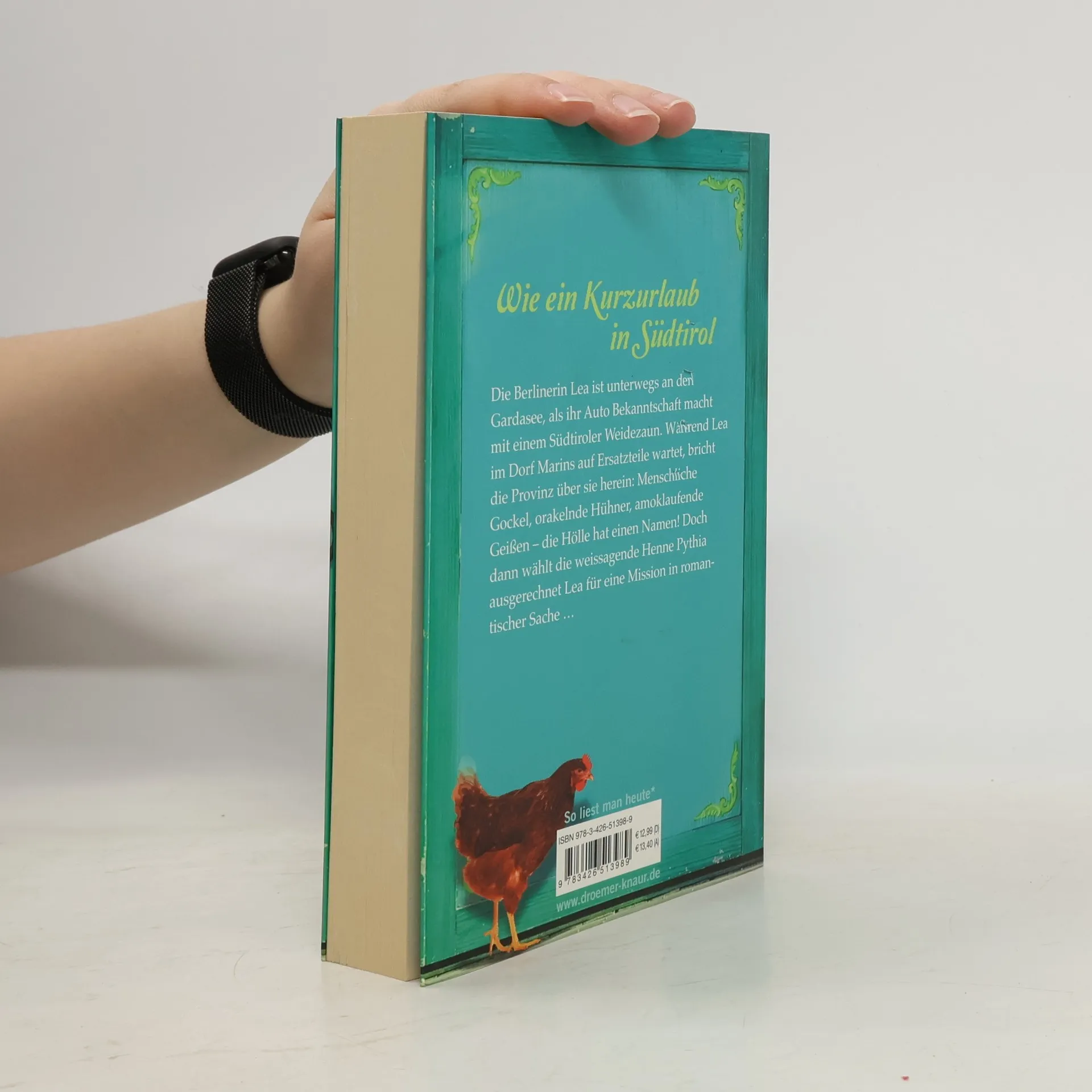 Die Berlinerin Lea ist unterwegs an den Gardasee, als ihr Auto Bekanntschaft mit einem Südtiroler Weidezaun macht. Während Lea im Dorf Marins auf Ersatzteile wartet, bricht die Provinz über sie herein: menschliche Gockel, orakelnde Hühner, amoklaufende Geißen – die Hölle hat einen Namen! Doch dann wählt die weissagende Henne Pythia ausgerechnet Lea für eine Mission in romantischer Sache …