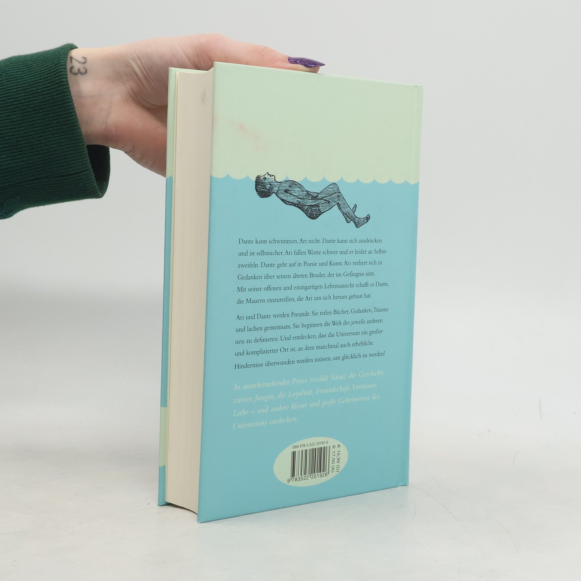 Dante kann schwimmen. Ari nicht. Dante kann sich ausdrücken und ist selbstsicher. Ari fallen Worte schwer und er leidet an Selbstzweifeln. Dante geht auf in Poesie und Kunst. Ari verliert sich in Gedanken über seinen älteren Bruder, der im Gefängnis sitzt. Mit seiner offenen und einzigartigen Lebensansicht schafft es Dante, die Mauern einzureißen, die Ari um sich herum gebaut hat. Ari und Dante werden Freunde. Sie teilen Bücher, Gedanken, Träume und lachen gemeinsam. Sie beginnen die Welt des jeweils anderen neu zu definieren. Und entdecken, dass das Universum ein großer und komplizierter Ort ist, an dem manchmal auch erhebliche Hindernisse überwunden werden müssen, um glücklich zu werden! In atemberaubender Prosa erzählt Sáenz die Geschichte zweier Jungen, die Loyalität, Freundschaft, Vertrauen, Liebe – und andere kleine und große Geheimnisse des Universums entdecken.