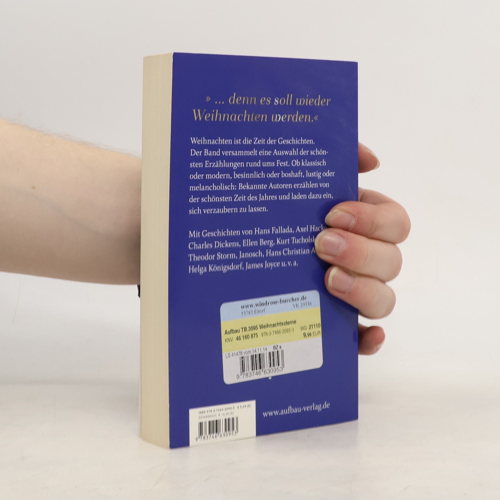 „ … denn es soll wieder Weihnachten werden.“ Weihnachten ist die Zeit der Geschichten. Der Band versammelt eine Auswahl der schönsten Erzählungen rund ums Fest. Ob klassisch oder modern, besinnlich oder boshaft, lustig oder melancholisch: Bekannte Autoren erzählen von der schönsten Zeit des Jahres und laden dazu ein, sich verzaubern zu lassen. Weihnachten ist für viele Menschen die schönste Zeit im Jahr. Wenn nur noch wenige Blätter auf dem Kalender sind, wird eifrig überlegt, wie das Fest für alle zu einem Höhepunkt wird. Große Dinner werden geplant, ungewöhnliche Gäste geladen, Geschenke vorbereitet, und abtrünnige Seelen sollen gerettet werden. Dass dies nicht immer ohne Hindernisse und Widrigkeiten vonstatten geht und meistens rechtzeitig zu einem guten Ende kommt, gehört zu den wunderbaren Geschehnisse in dieser Zeit, genauso wie die Wunder und Märchen, die sich in dieser einzigartigen Nacht zutragen. 27 klassische und moderne Geschichten erzählen vom Zauber der Weihnacht. Mit Geschichten von Hans Fallada, Axel Hacke, Charles Dickens, Ellen Berg, Kurt Tucholsky, Theodor Storm, Janosch, Hans Christian Andersen, Helga Königsdorf, James Joyce u. v. a.