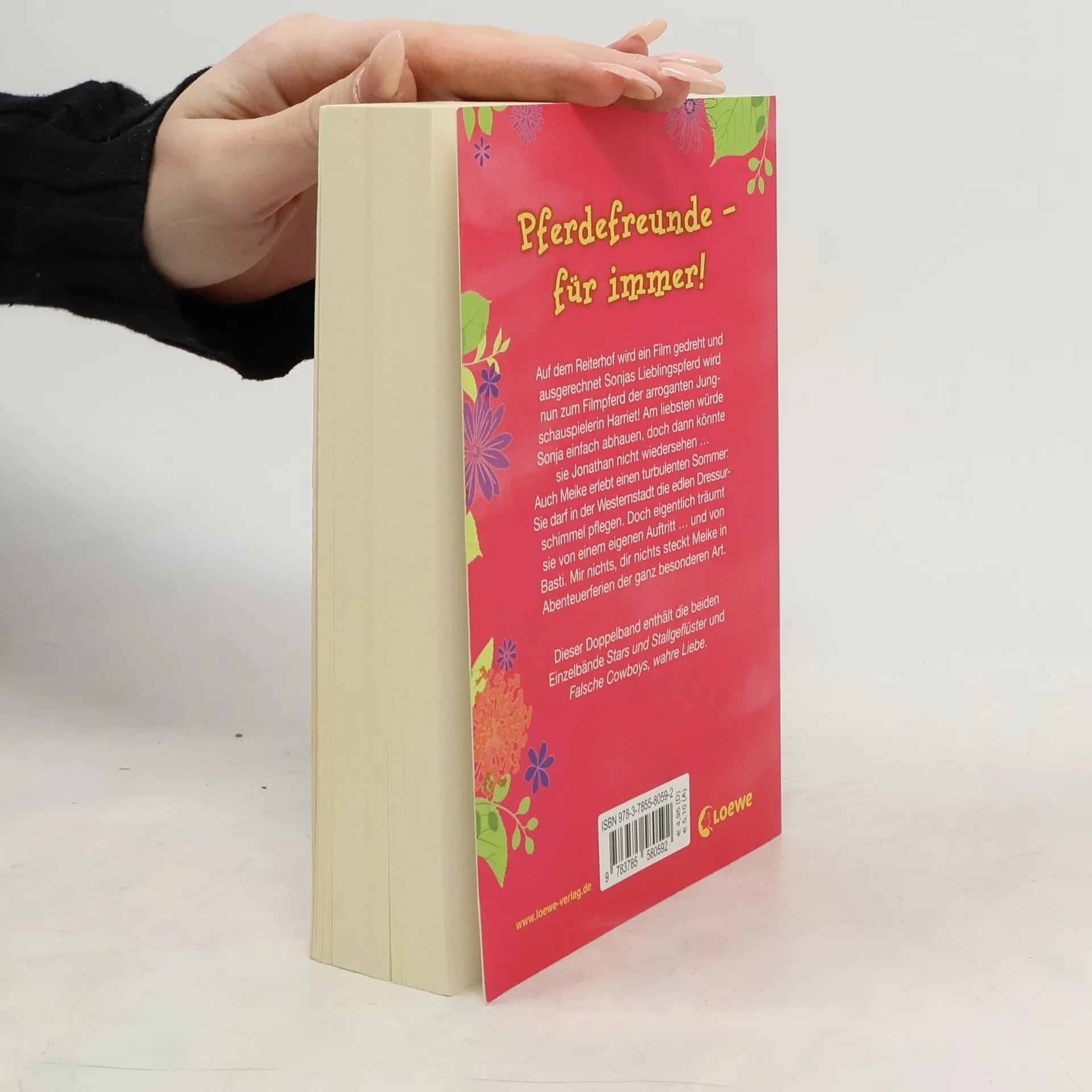 Zwei Geschichten rund um Pferde und Ponys, reiten, die erste Liebe, süße Jungs und vermeintliche Filmstars in einem Band – ideal für alle Pferdefans! Dieser Doppelband enthält die beiden Einzelbände „Stars und Stallgeflüster“ und „Falsche Cowboys, wahre Liebe“. Auf dem Reiterhof wird ein Film gedreht, und ausgerechnet Sonjas Lieblingspferd wird nun zum Filmpferd der arroganten Jungschauspielerin Harriet! Am liebsten würde Sonja einfach abhauen, doch dann könnte sie Jonathan nicht wiedersehen … Auch Meike erlebt einen turbulenten Sommer: Sie darf in der Westernstadt die edlen Dressurschimmel pflegen. Doch eigentlich träumt sie von einem eigenen Auftritt … und von Basti. Mir nichts, dir nichts steckt Meike in Abenteuerferien der ganz besonderen Art.