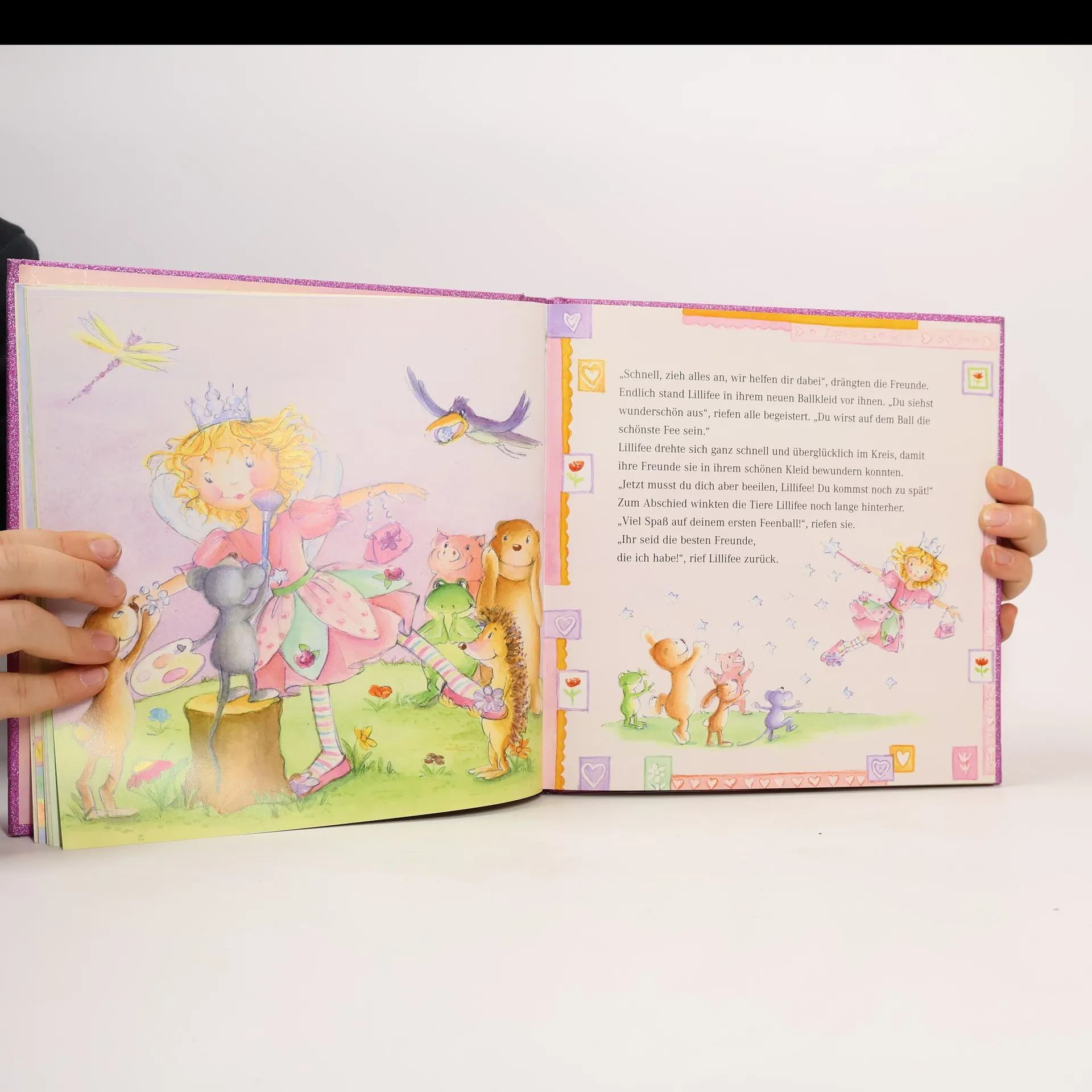 Prinzessin Lillifee ist so beschäftigt, dass sie die Einladung zu ihrem ersten Feenball vergisst. Woher soll sie so schnell ein Kleid bekommen? Prinz Wladimir braucht ihre Hilfe, denn das Einhorn Rosalie ist krank und die Eiskristallwelt schwebt in größter Gefahr. Gelingt es Lillifee, ihm zu helfen? Und dann findet auch noch ein Ballettwettbewerb im Feenreich statt, für den Lillifee mit ihren Freunden etwas einstudieren möchte. Drei der schönsten Lillifee-Geschichten in einem Band: -Prinzessin Lillifee -Prinzessin Lillifee und das Einhorn -Prinzessin Lillifee, die kleine Ballerina