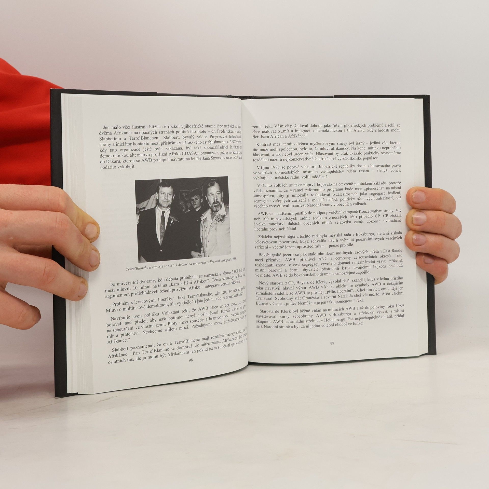 Vítězství nebo násilí: Historie Afrikánského hnutí odporu v Jižní Africe, je úplným a detailním popisem vzniku, dramatické historie a úpadku největší a nejmilitantnější bílé, rasistické organizace v Jižní Africe, která v osmdesátých a většinu devadesátých let 20. století plnila stránky jihoafrického i světového tisku. Organizace, více známá pod zkratkou AWB, vedená charismatickým řečníkem Eugenem Terre’Blanchem, dokázala v době svého vrcholu přilákat desetitisíce bílých Jihoafričanů, kteří verbálně a často i fyzicky odporovali demokratizaci Jižní Afriky. Kniha popisuje založení AWB v roce 1973 a její více než dvacet let trvající boj za zachování rasové segregace. Dozvíme se o rozbíjení schůzí umírněných jihoafrických politických stran, pouličních bitvách s policií, shromažďování zbraní a teroristických útocích, ale také o skandálech, které organizaci provázely ve stejné míře, jako násilí. Kniha popisuje její legendární obsazení Světového obchodního centra v roce 1993, kde právě probíhala jednání o ukončení apartheidu; samostatná kapitola je věnována nezdařené invazi AWB do černošské domoviny Bophuthatswana v roce 1994 a další například sérii bombových atentátů provázejících předání moci v zemi černošské většině ve stejném roce. Pravděpodobně nejkompletnější práce zabývající se militantním odporem bílých Jihoafričanů vůči demokratickým a de-segregačním tendencím v Jižní Africe v poslední čtvrtině 20. století.