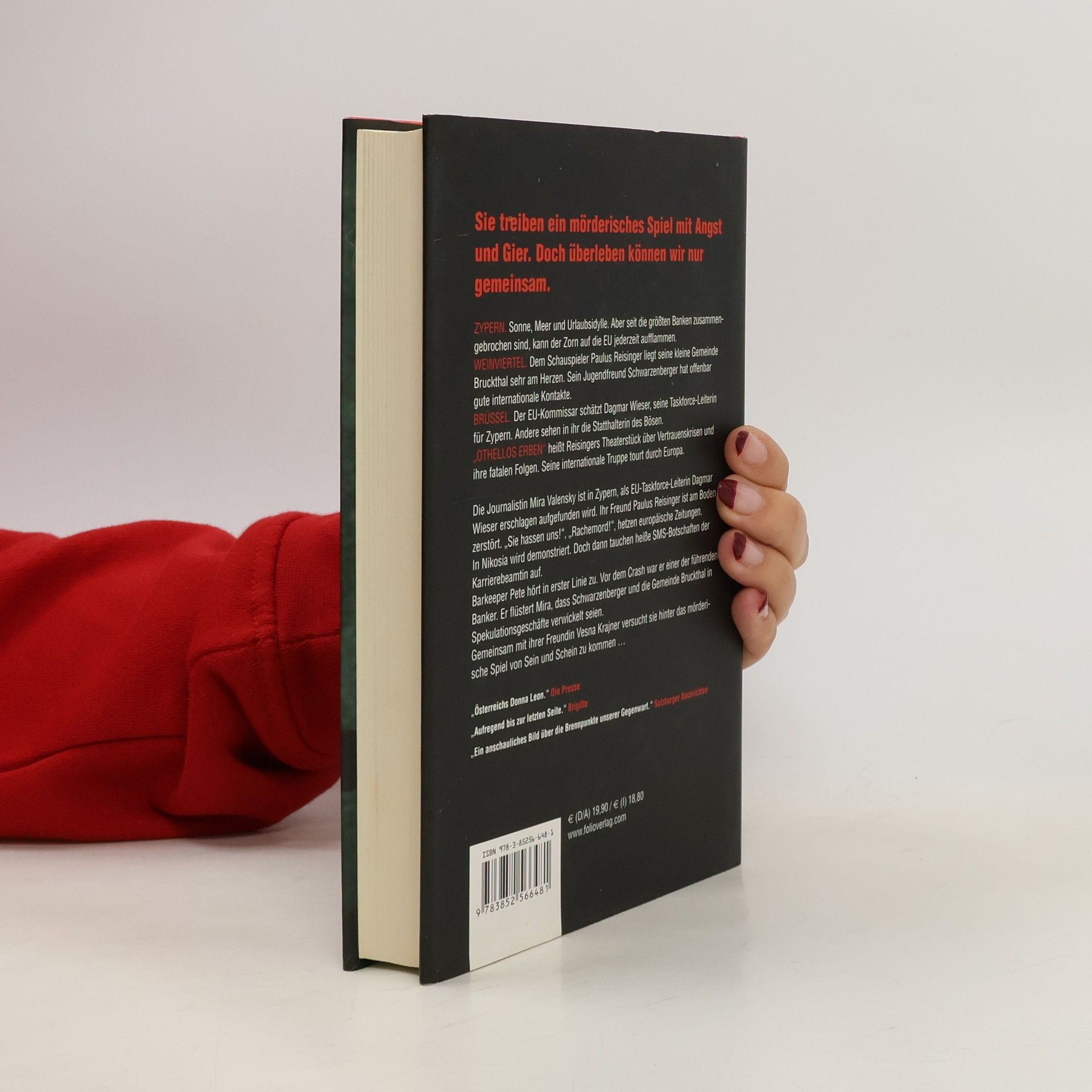 Die Journalistin Mira Valensky ist in Zypern, als EU-Taskforce-Leiterin Dagmar Wieser erschlagen aufgefunden wird. Ihr Freund Paulus Reisinger ist am Boden zerstört. „Sie hassen uns!“, „Rachemord!“, hetzen europäische Zeitungen. In Nicosia wird demonstriert. Doch dann tauchen heiße SMS-Botschaften der Karrierebeamtin auf. Barkeeper Pete hört in erster Linie zu. Vor dem Crash war er einer der führenden Banker. Er flüstert Mira, dass Schwarzenberger und die Gemeinde Bruckthal in Spekulationsgeschäfte verwickelt seien. Gemeinsam mit ihrer Freundin Vesna Krajner versucht sie hinter das mörderische Spiel von Sein und Schein zu kommen … In ihren Krimis rund um die Journalistin Mira Valensky und ihre bosnischstämmige Freundin Vesna Krajner geht es um aktuelle gesellschaftspolitische Themen, um das, was hinter den Hochglanzfassaden unserer Konsumwelt lauert.