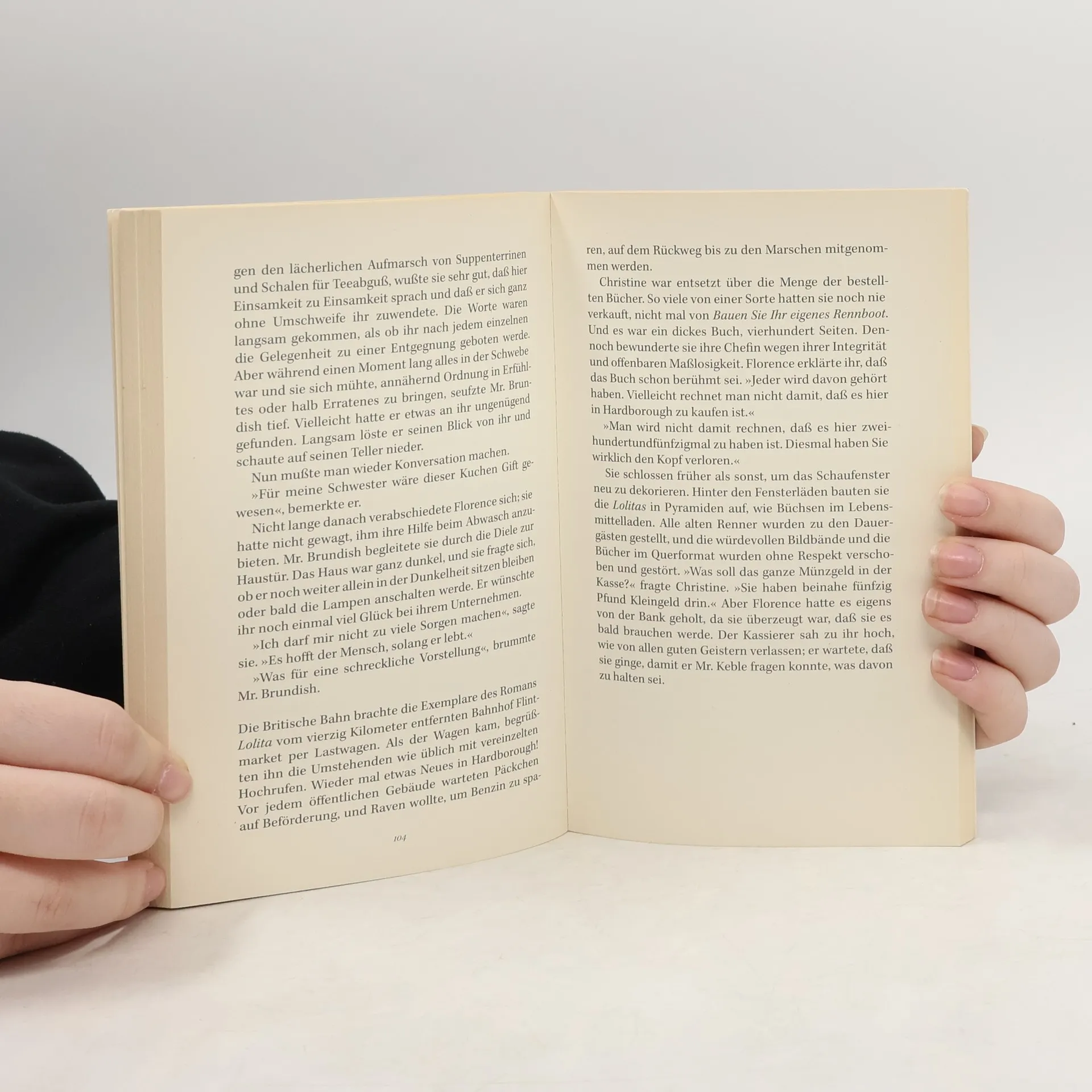 Florence Green erwirbt in Hardborough, einem verschlafenen Dorf an der Küste Ostenglands, das Old House als zukünftiges Domizil für ihre Buchhandlung. Dass das Gebäude anscheinend von einem Poltergeist besessen und bis auf die Grundmauern feucht ist, bringt sie von ihrem Vorhaben ebensowenig ab wie die Tatsache, dass sie von finanziellen Dingen keine Ahnung hat. Voller Schwung stürzt sie sich in die Vorbereitungen und stattet ihre Buchhandlung liebevoll aus. Die Einwohner des kleinen Städtchens begegnen dem Unternehmen zunächst mit Skepsis, bald stellen sich jedoch erste Stammkunden ein. Als Florence Green aber dann ein gerade erschienenes Buch eines bis dahin unbekannten Autors, Vladimir Nabokov, verkauft, ist die Aufregung groß und weitet sich zu einem Skandal aus ...