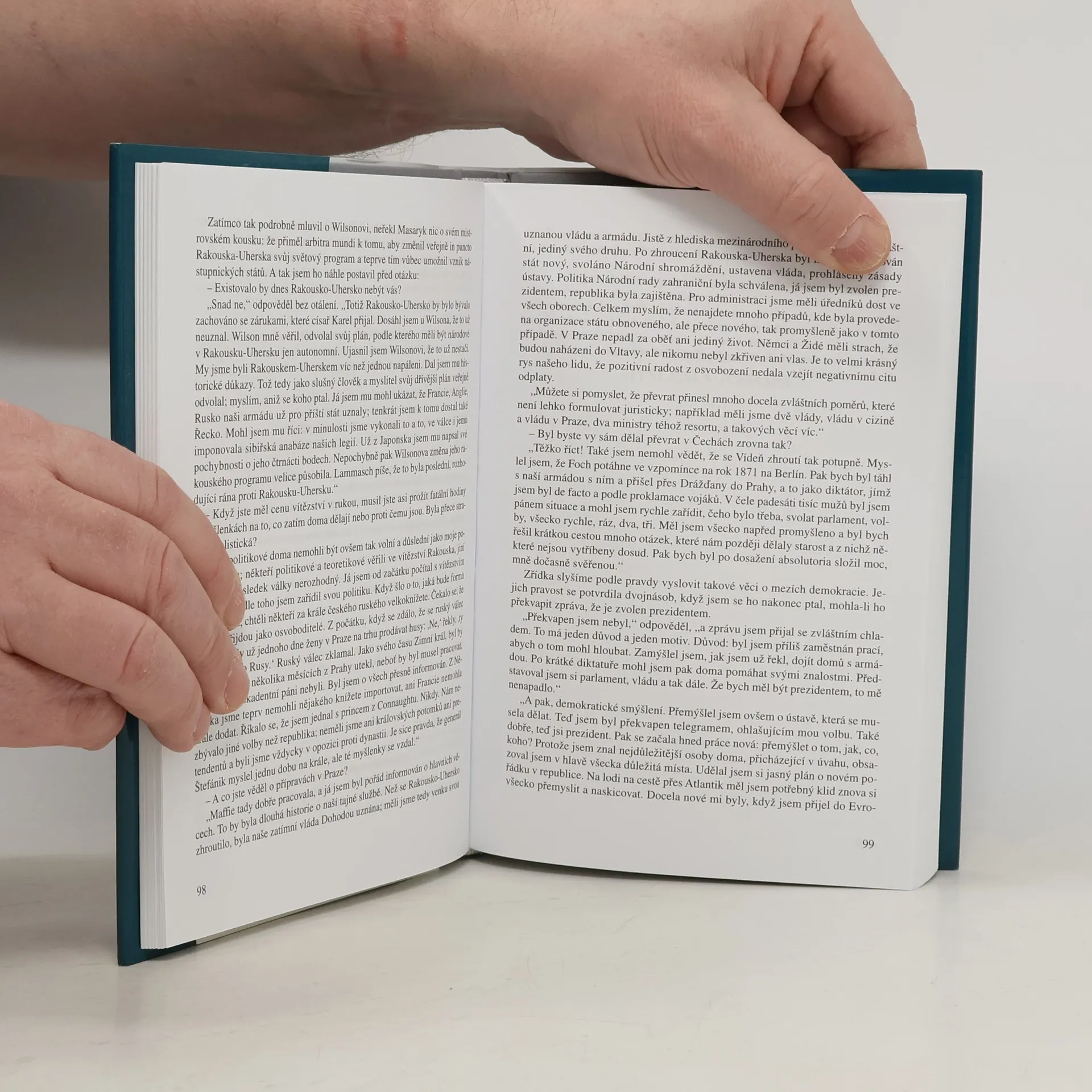 Autor knihy ke svým dosavadním životopisům významných mužů připojil podobiznu velkého demokrata, filozofa a státníka, spojujícího v dokonalou jednotu teorii a praxi. Učinil tak nejen ve svém úvodním reliéfu, ale též ve věrném podání Masarykových autobiografických, filozofických a politických úvah, jež s ohledem na politické a kulturní souvislosti zasadil do dobře připraveného rámce svých kapitol. Prezident Masaryk revidoval text rukopisu, čímž vznikla kniha, na níž se podíleli dva autoři - Emil Ludwig a T. G. Masaryk. Vyšla k 85. narozeninám TGM. 10. české vydání je doplněno rozsáhlou ediční poznámkou, dodatky, vysvětlivkami a komentovaným rejstříkem.