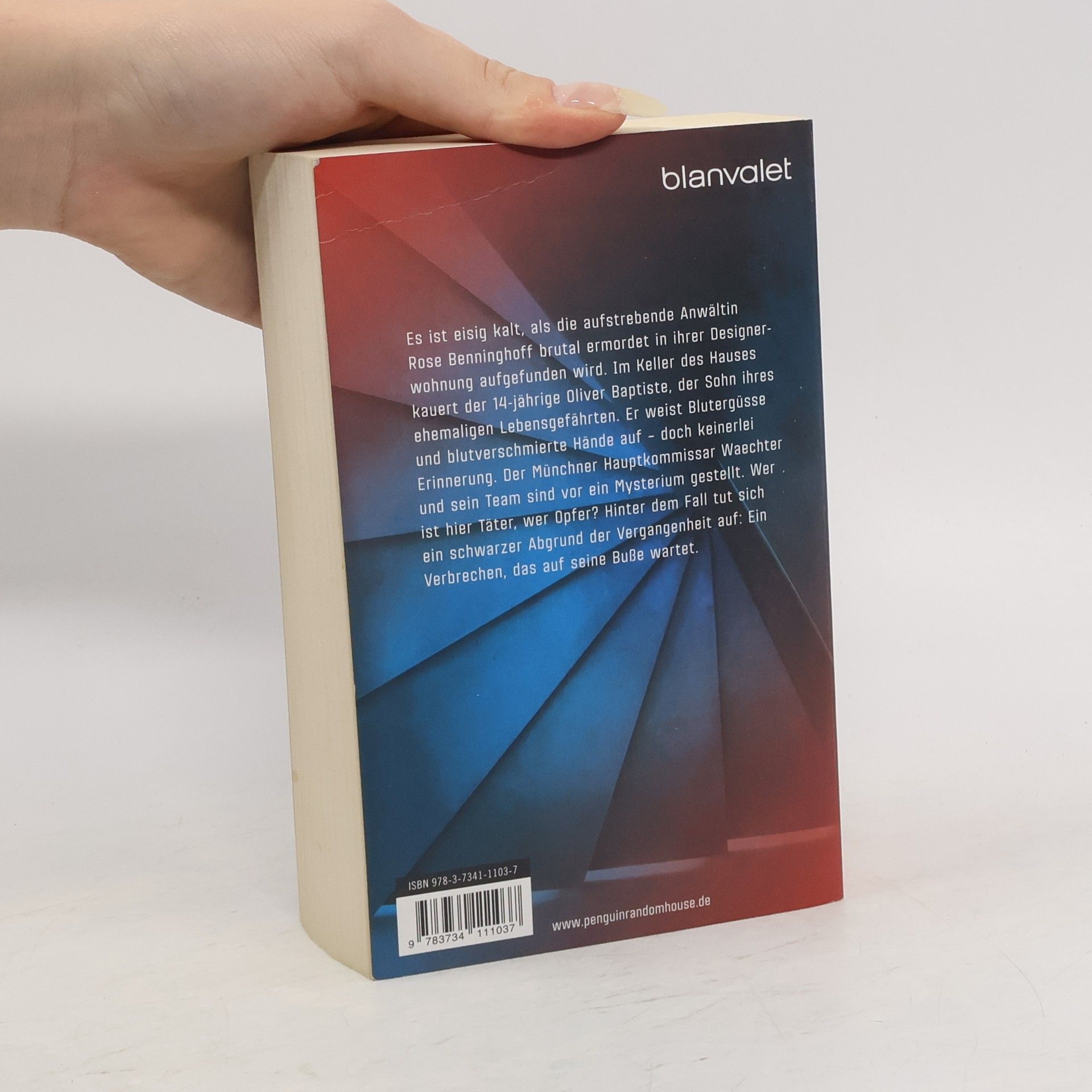 Er sagt, er kann sich an nichts erinnern. Doch an seinen Händen klebt Blut ... Die erfolgreiche Anwältin Rose Benninghoff liegt mit durchschnittener Kehle in ihrer Designerwohnung. Im Keller des Hauses kauert der vierzehnjährige Oliver Baptiste, sein Körper mit Blutergüssen übersät, seine Hände blutverschmiert. Er kann sich an nichts erinnern. In einem klirrend kalten Jahrhundertwinter nimmt der Münchner Hauptkommissar Waechter mit seinem Team die Jagd nach dem Mörder auf. Doch bald verschwimmen die Grenzen zwischen Tätern und Opfern immer mehr, und die Ermittler stoßen auf ein altes Verbrechen, das nie gesühnt wurde, und das seine Schatten bis in die Gegenwart wirft ...